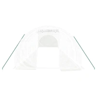 This spacious greenhouse can accommodate a considerable number of fruits, vegetables and plants. It is ideal for protecting your plants from adverse weather conditions. Durable PE cover: Polyethylene (PE) is the most widely used plastic material. It is UV-resistant, weather-resistant, anti-tear, lightweight, and easy to maintain. It also protects your plants against the damage from birds while offering heat preservation.Sturdy frame: Steel is an exceptionally hard and strong material. It offers sturdiness and stability. Galvanisation provides better protection against corrosion and is useful for products that'll be used outdoors as well as in harsh environments.Practical design: The plant house is designed for easy access and optimized air circulation thanks to its zippered roll-up door and 4 side roll-up mesh windows. Good to know:We recommend adding the foundation for added sturdiness. The roof of the greenhouse cannot withstand heavy snowfall.