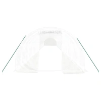 This spacious greenhouse can accommodate a considerable number of fruits, vegetables and plants. It is ideal for protecting your plants from adverse weather conditions. Durable PE cover: Polyethylene (PE) is the most widely used plastic material. It is UV-resistant, weather-resistant, anti-tear, lightweight, and easy to maintain. It also protects your plants against the damage from birds while offering heat preservation.Sturdy frame: Steel is an exceptionally hard and strong material. It offers sturdiness and stability. Galvanisation provides better protection against corrosion and is useful for products that'll be used outdoors as well as in harsh environments.Practical design: The plant house is designed for easy access and optimized air circulation thanks to its zippered roll-up door and 4 side roll-up mesh windows. Good to know:We recommend adding the foundation for added sturdiness. The roof of the greenhouse cannot withstand heavy snowfall.