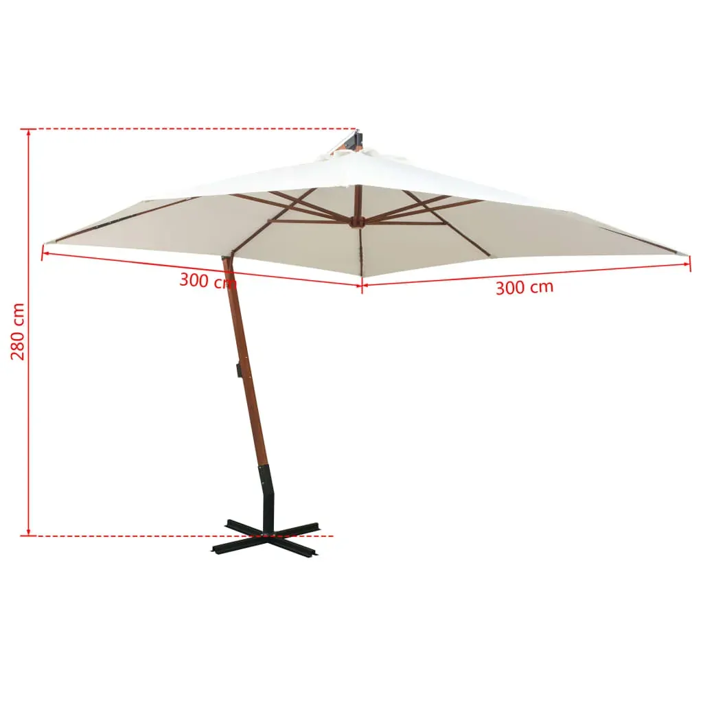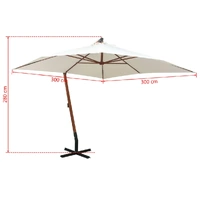 This elegant, high-quality wooden hanging garden parasol is a perfect choice for creating some shade and protecting you from the sun's harmful UV rays while relaxing with your family on the patio, terrace or in the garden. It will also make an eye-catching addition to your outdoor living space. Made of UV-resistant and colourfast polyester fabric, the parasol cover provides you with optimum protection against the sun. The strong wooden pole, along with 8 sturdy bamboo ribs and a cross base, ensures great stability and durability. The canopy hangs freely from the pole, so the pole will not obstruct the space underneath the parasol. The garden umbrella can be easily opened and closed thanks to the crank mechanism.