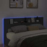 This headboard cabinet with LED, featuring a stylish design, gives your bed frame a stunning modern touch and is perfectly suitable in any bedroom. Durable material: The engineered wood is of exceptional quality with smooth surface and also features strength, stability and resistance to moisture.RGB LED lights: The bed headboard is equipped with vibrant RGB LED lights. With various customisable menus, you can effortlessly change the colour of the lights and even set them to adjust automatically. These LED lights not only enhance the contemporary look of the bed header but also add to its trendy appeal.Ample storage space: Featuring an open shelf, the bed headboard cabinet is perfect for displaying your books, decorative items, picture frames and alarm clocks.Excellent support: The headboard for bed provides you with excellent back support when you sit up in bed to read or watch TV. Good to know:The delivery includes LED headboard only. The bed frame and mattress are not included. You can check our shop for the matching frames and mattresses.The product has a USB connector that requires a certified 5V USB power source (not included). Warning:To prevent it from tipping over, this product must be used with the provided wall attachment device.