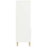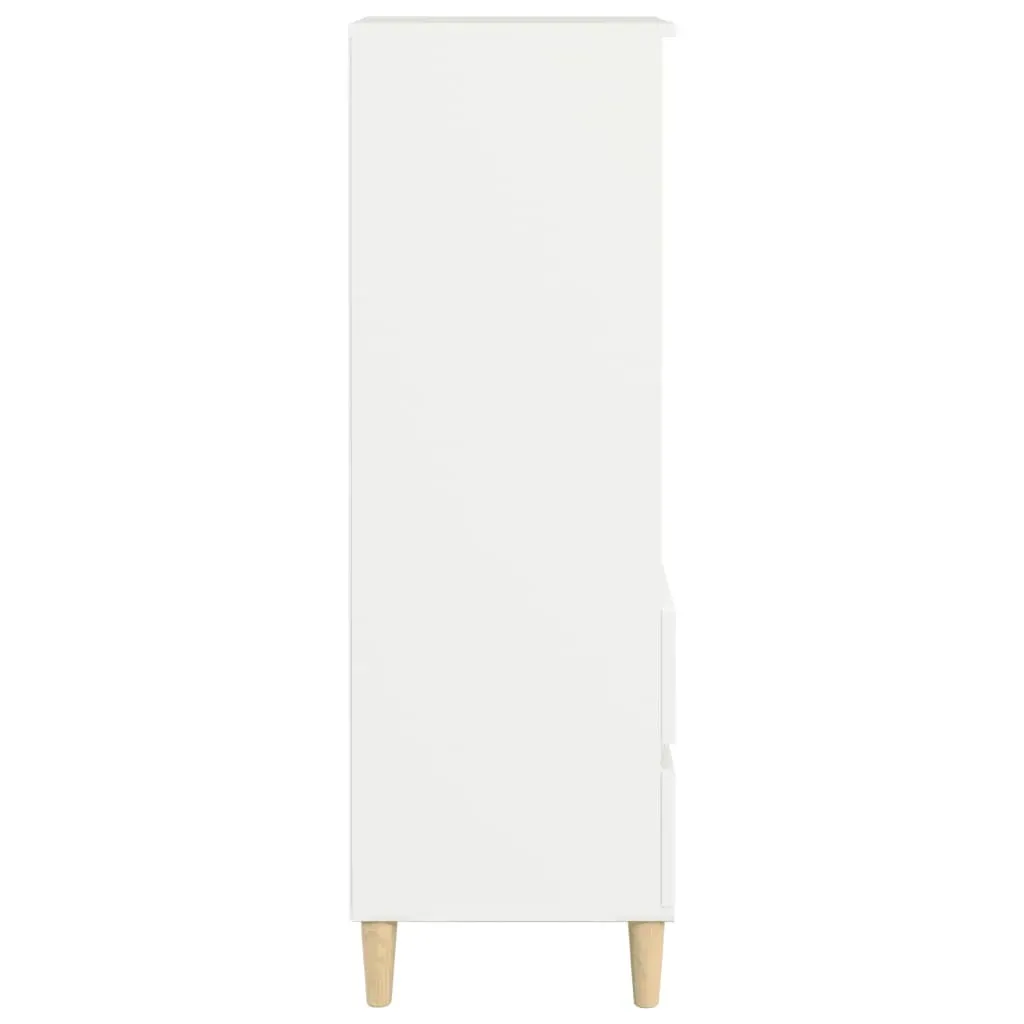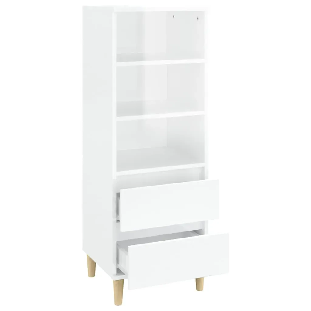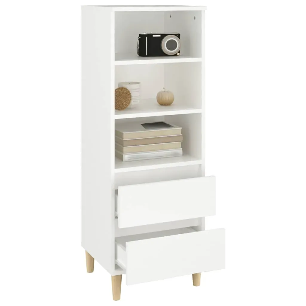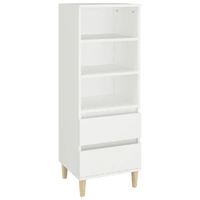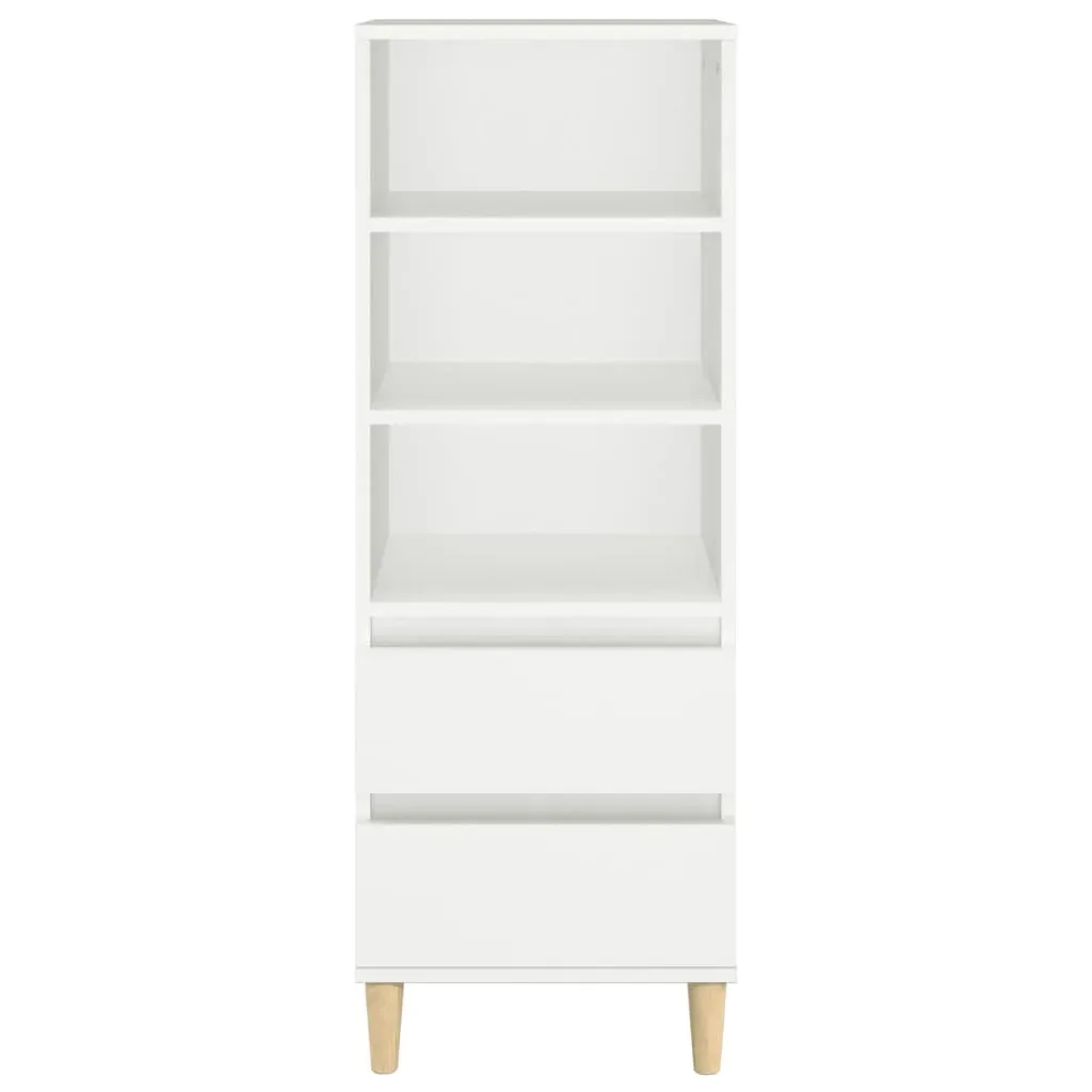 This classic highboard is meant to make a decorative and practical addition to your home. Durable material: This sideboard is made of engineered wood. The engineered wood is of exceptional quality with smooth surface and also features strength, stability, and resistance to moisture.Stable wooden feet: The wooden feet give the side cabinet a natural and pleasant look while ensuring stability. It can blend well with any interior decor.Ample storage space: The cabinet has 3 open shelves and 2 drawers, providing ample storage space for keeping your various daily essentials well-organised and within easy reach.Sturdy top: You can also place your favourite photos, decorations or flowers on top of this storage cabinet to enrich your life. Warning:In order to prevent overturning, this product must be used with the wall attachment device provided. Note:Each product comes with an assembly manual in the box for easy assembly.