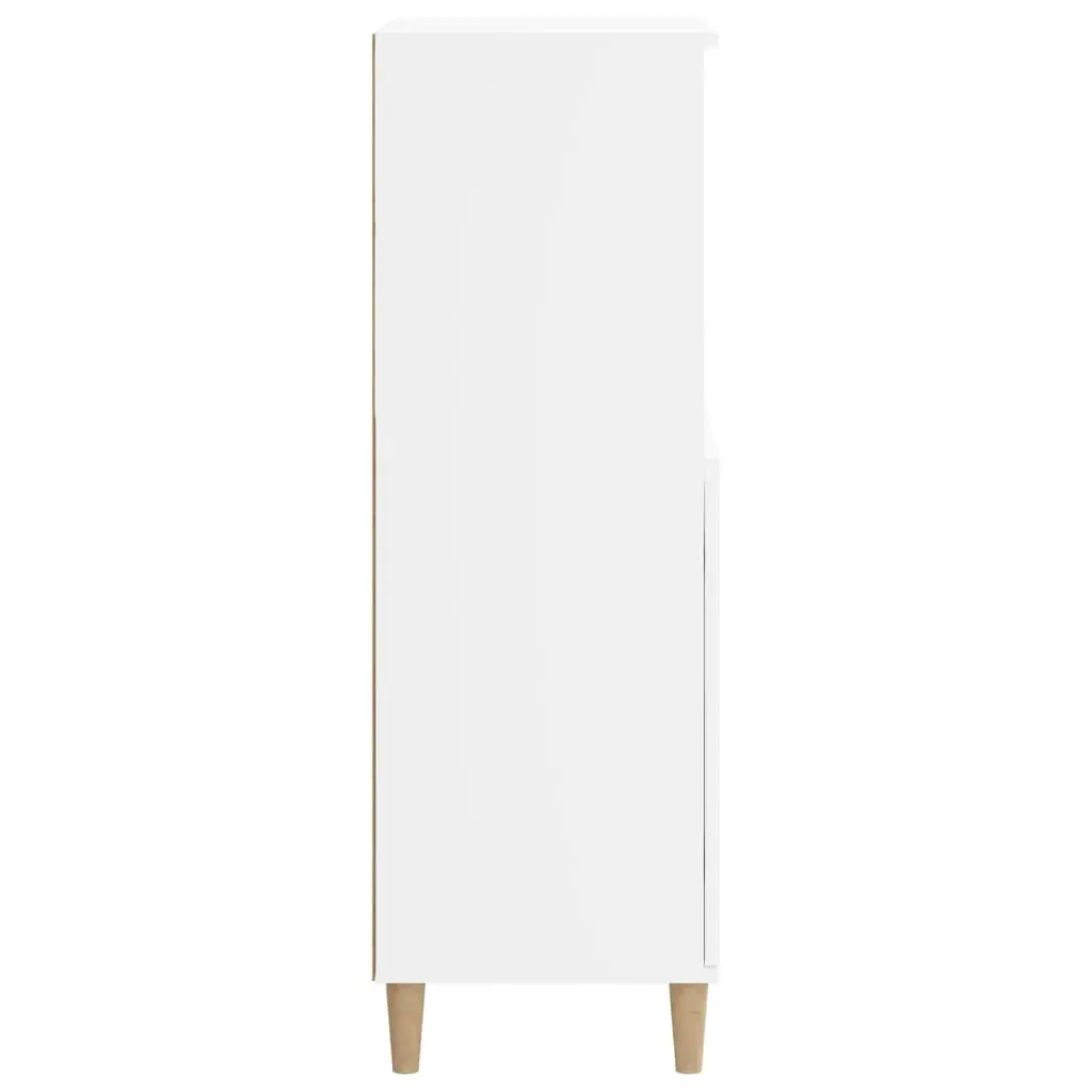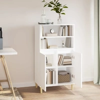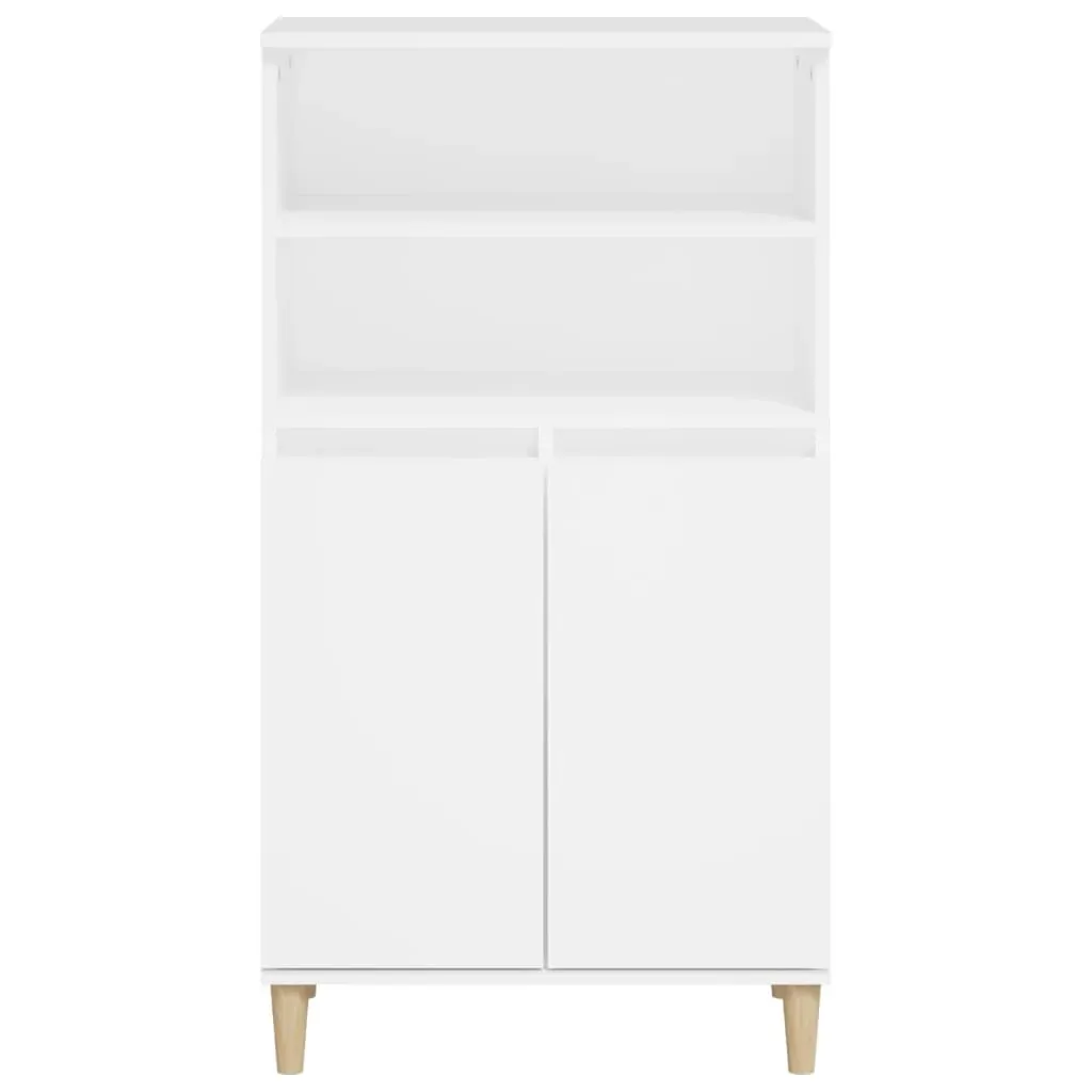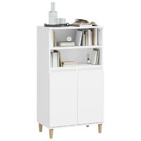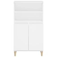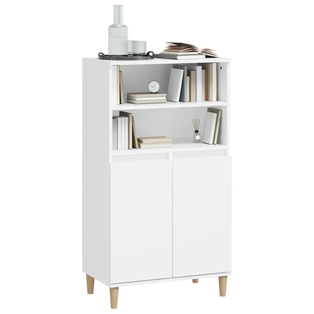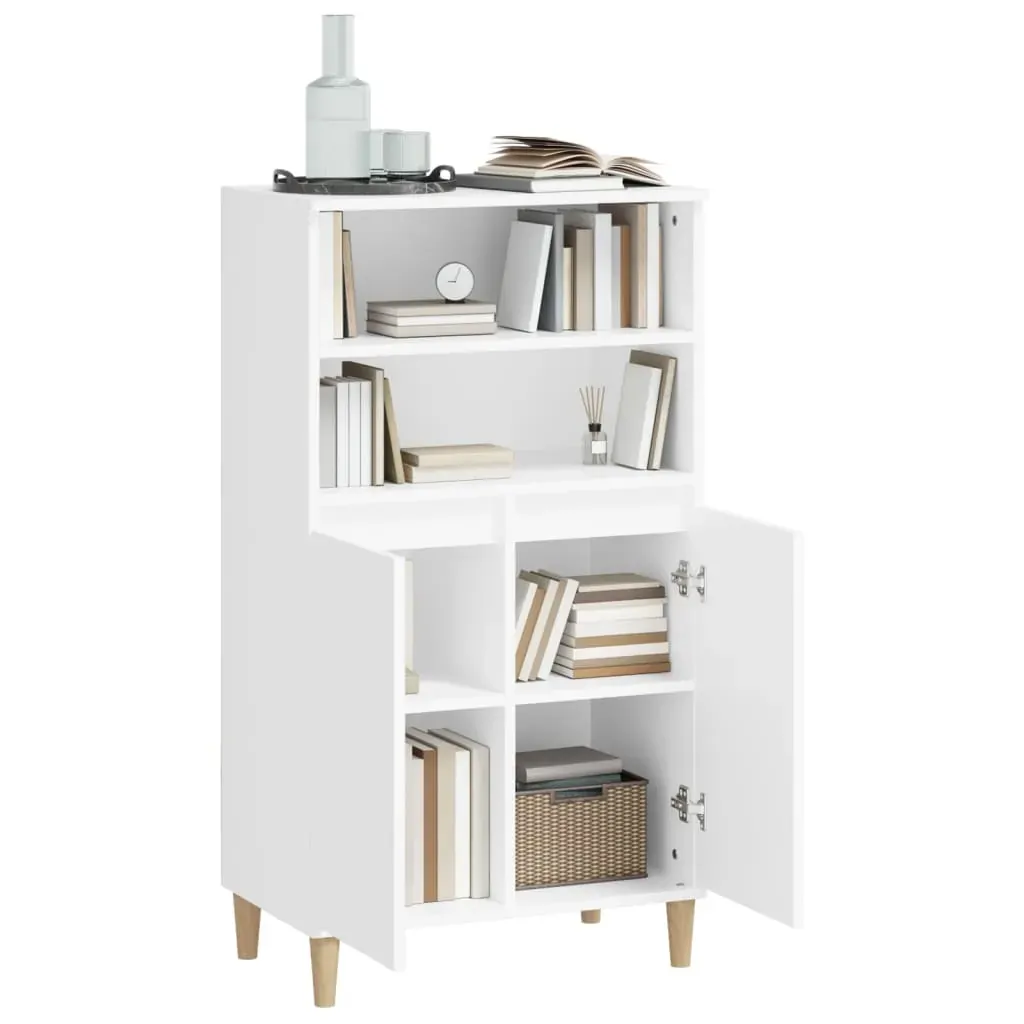 This classic highboard is meant to make a decorative and practical addition to your home. Durable material: This sideboard is made of engineered wood. The engineered wood is of exceptional quality with smooth surface and also features strength, stability, and resistance to moisture.Stable wooden feet: The wooden feet give the side cabinet a natural and pleasant look while ensuring stability. It can blend well with any interior decor.Ample storage space: The cabinet has 2 open shelves and 4 compartments, providing ample storage space for keeping your various daily essentials well-organised and within easy reach.Practical design: This storage cabinet features doors, which can protect your things from dust and dirt.Sturdy top: You can also place your favourite photos, decorations or flowers on top of this side board to enrich your life. Warning:In order to prevent overturning, this product must be used with the wall attachment device provided. Note:Each product comes with an assembly manual in the box for easy assembly.