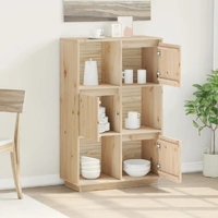 Introduce a unique charm to your existing interior with this wooden highboard! Premium material: Solid pine wood is a beautiful natural material. Pine wood has a straight grain, and the knots give the material its signature, rustic look.Practical design: The sideboard provides ample storage space to store and display your books, magazines, potted plants, framed photos and other personal belongings well organised and within reach.Two assembling options: The doors of the cabinet can be installed on the left or right according to your needs. Warning:To prevent overturning, this product must be used with the wall attachment device provided.