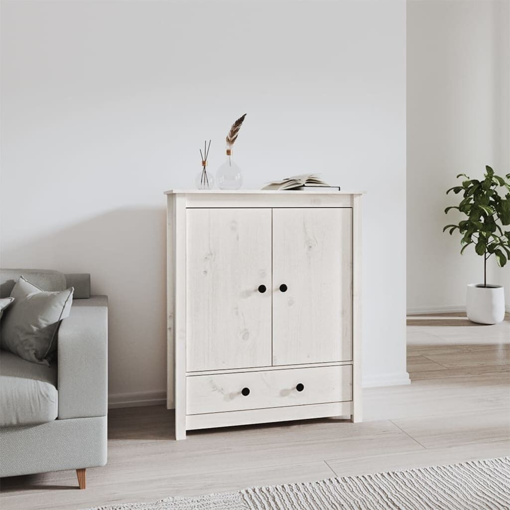 Introduce a touch of unique charm to your existing interior with this classic wooden highboard! Solid pine wood: Solid pine wood is a beautiful natural material. Pine wood has a straight grain, and the knots give the material its signature, rustic look.Ample storage space: Equipped with 2 compartments and 1 drawer, the sideboard offers ample storage space for keeping your various daily essentials well organised and within easy reach.Practical doors: This cabinet features doors, which can protect your things from dust and dirt.Sturdy top: You can also place your favourite photos, decorations, or flowers on top of this side cabinet to enrich your life. Note:Each product comes with an assembly manual in the box for easy assembly. Warning:To prevent overturning, this product must be used with the wall attachment device provided.