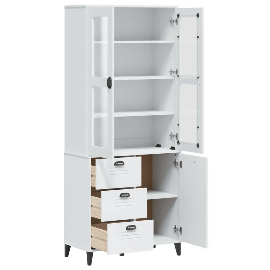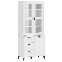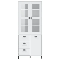 Are you hunting for a stylish highboard? This highboard adds an elegant charm to your existing interior! Solid pine wood: Solid pine wood is a beautiful natural material. Pine wood has a straight grain, and the knots give the material its signature, rustic look. Made of solid pine wood, the cabinet is durable and sturdy.Ample storage space: The sideboard provides ample storage space for keeping your various daily essentials well-organised and within easy reach.Glass doors: The doors of this wooden cabinet top have increased robustness and safety thanks to their tempered polished glass. And it allows you to see inside the top half to display items beautifully.Practical handles: The storage cabinet comes with handles that make it easy to open and close the cabinet while adding extra beauty. Warning:To prevent it from tipping over, this product must be used with the provided wall attachment device.