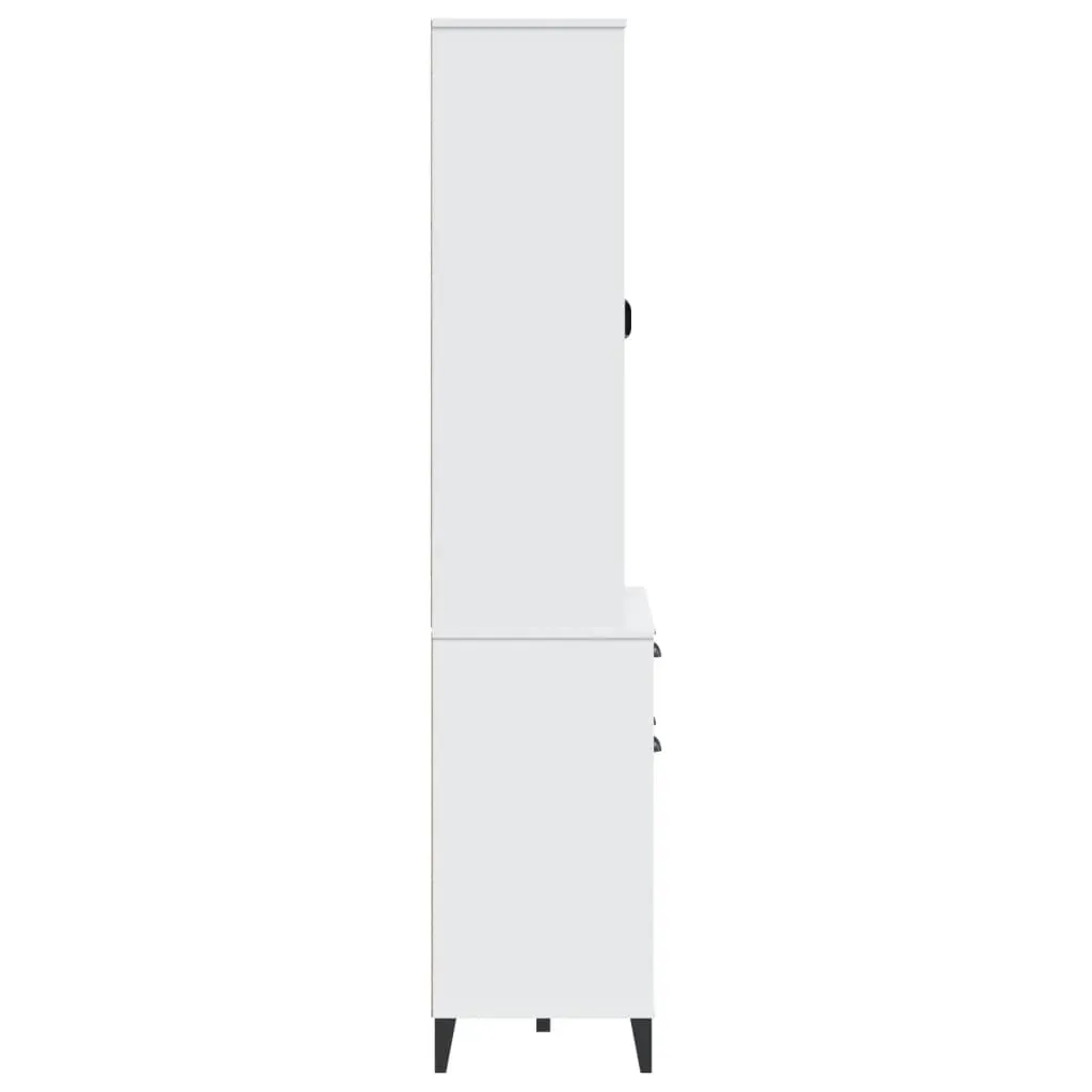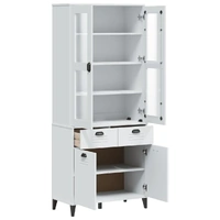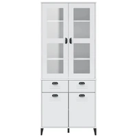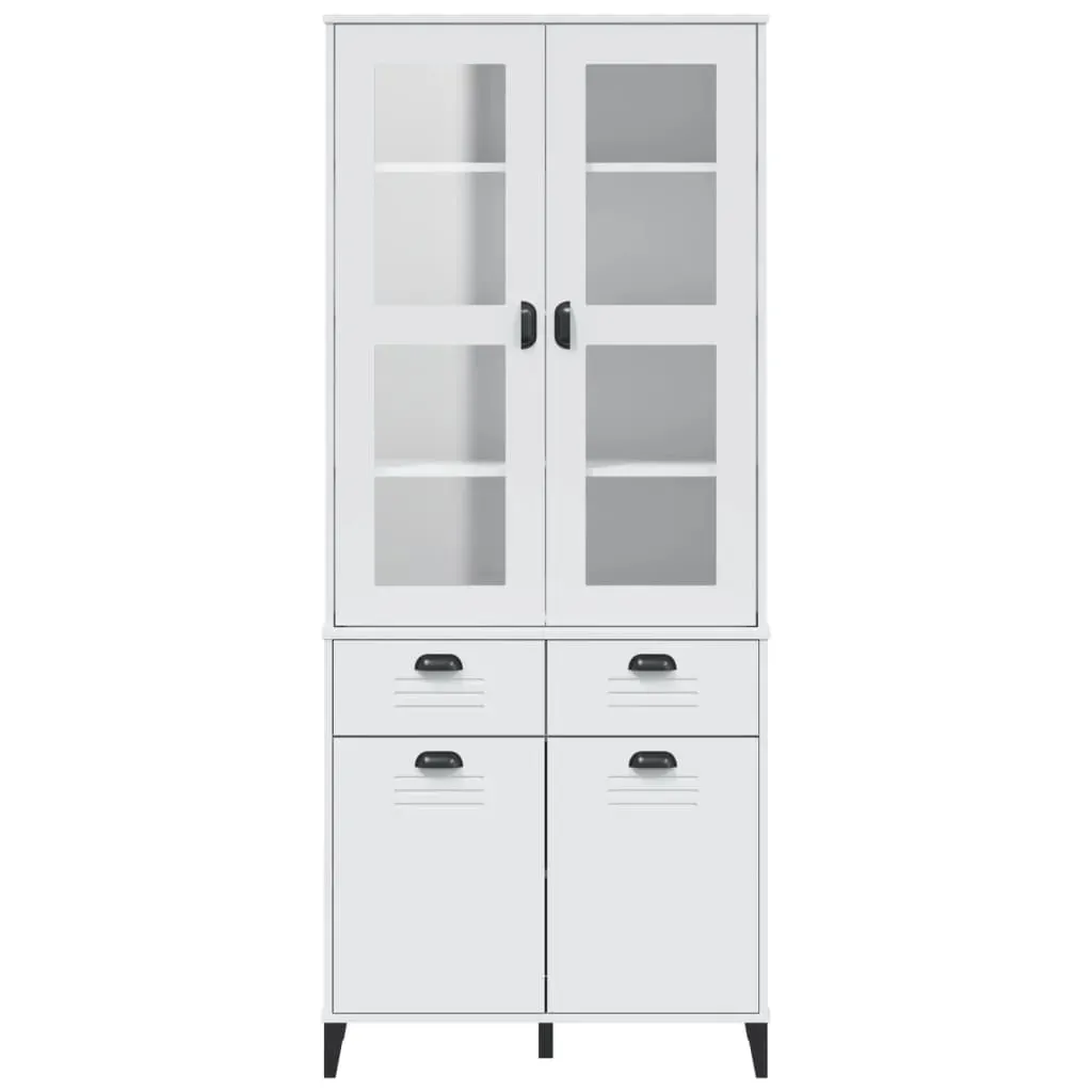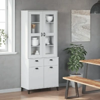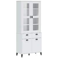 Are you hunting for a stylish highboard? This highboard adds an elegant charm to your existing interior! Solid pine wood: Solid pine wood is a beautiful natural material. Pine wood has a straight grain, and the knots give the material its signature, rustic look. Made of solid pine wood, the cabinet is durable and sturdy.Ample storage space: The sideboard provides ample storage space for keeping your various daily essentials well-organised and within easy reach.Glass doors: The doors of this wooden cabinet top have increased robustness and safety thanks to their tempered polished glass. And it allows you to see inside the top half to display items beautifully.Practical handles: The storage cabinet comes with handles that make it easy to open and close the cabinet while adding extra beauty. Warning:To prevent it from tipping over, this product must be used with the provided wall attachment device.