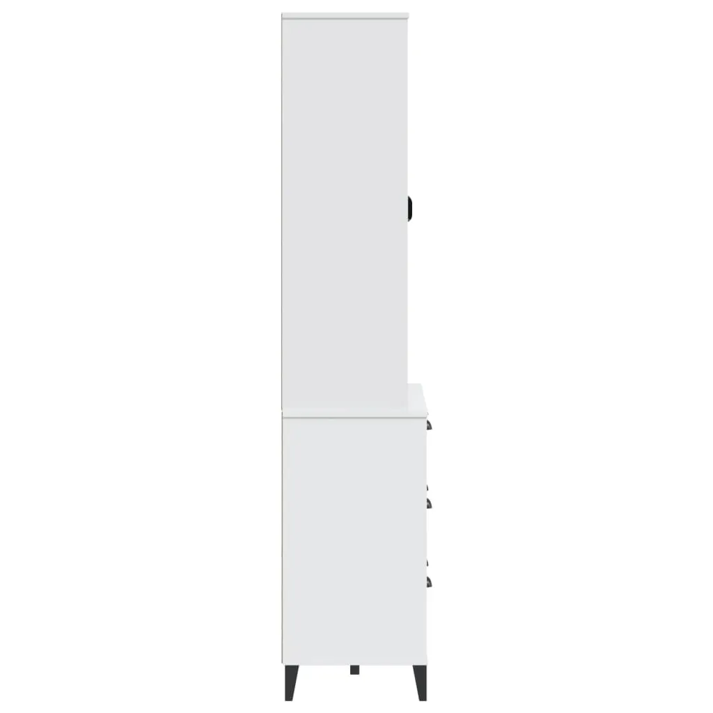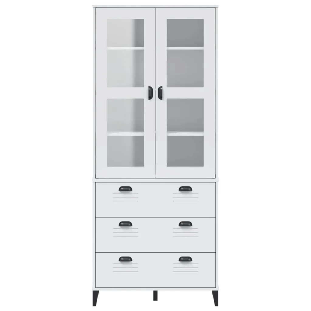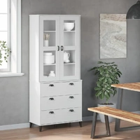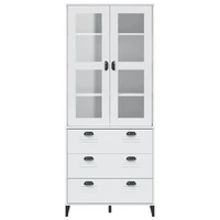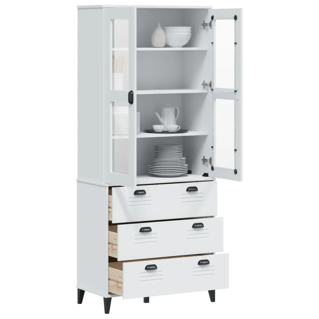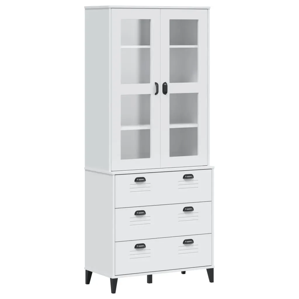 Are you hunting for a stylish highboard? This highboard adds an elegant charm to your existing interior! Solid pine wood: Solid pine wood is a beautiful natural material. Pine wood has a straight grain, and the knots give the material its signature, rustic look. Made of solid pine wood, the cabinet is durable and sturdy.Ample storage space: The sideboard provides ample storage space for keeping your various daily essentials well-organised and within easy reach.Glass doors: The doors of this wooden cabinet top have increased robustness and safety thanks to their tempered polished glass. And it allows you to see inside the top half to display items beautifully.Practical handles: The storage cabinet comes with handles that make it easy to open and close the cabinet while adding extra beauty. Warning:To prevent it from tipping over, this product must be used with the provided wall attachment device.
