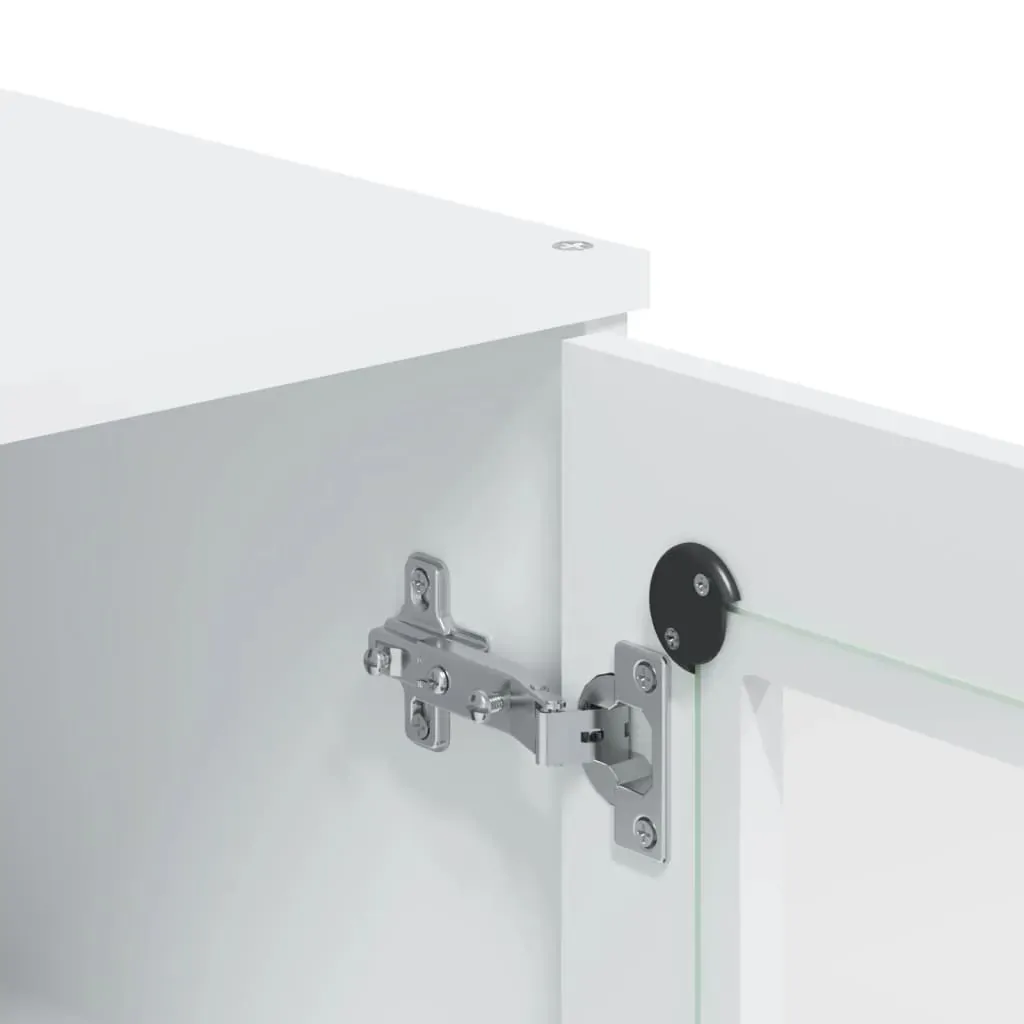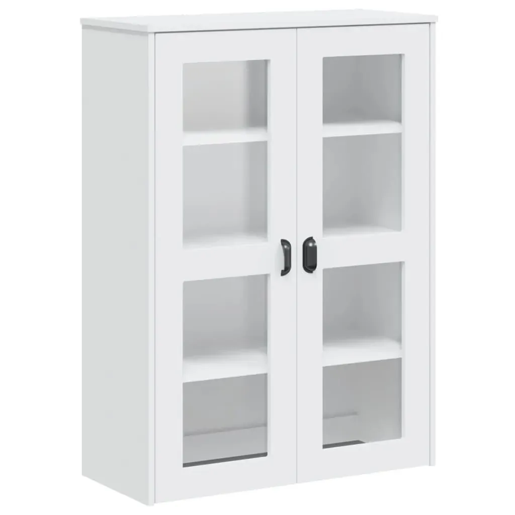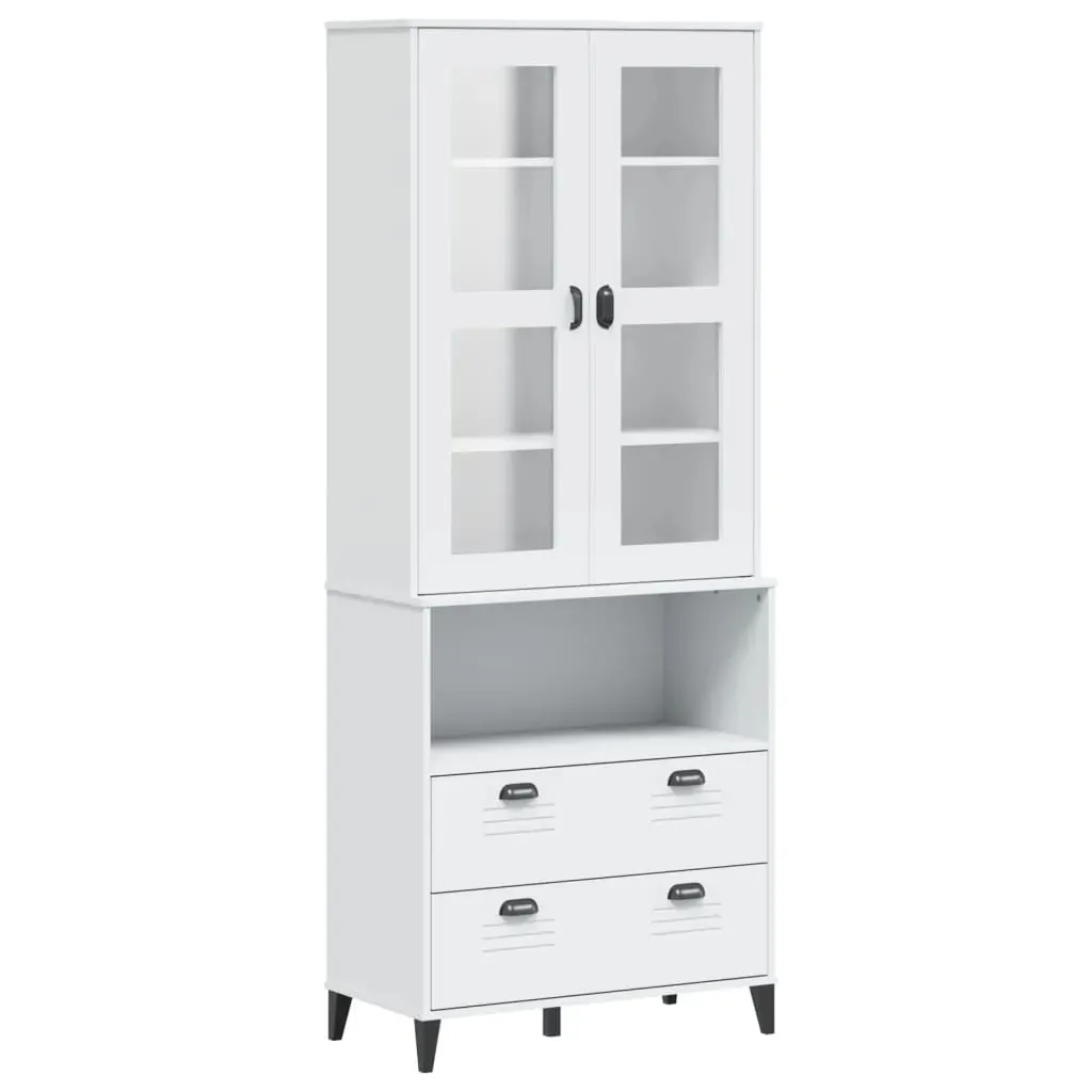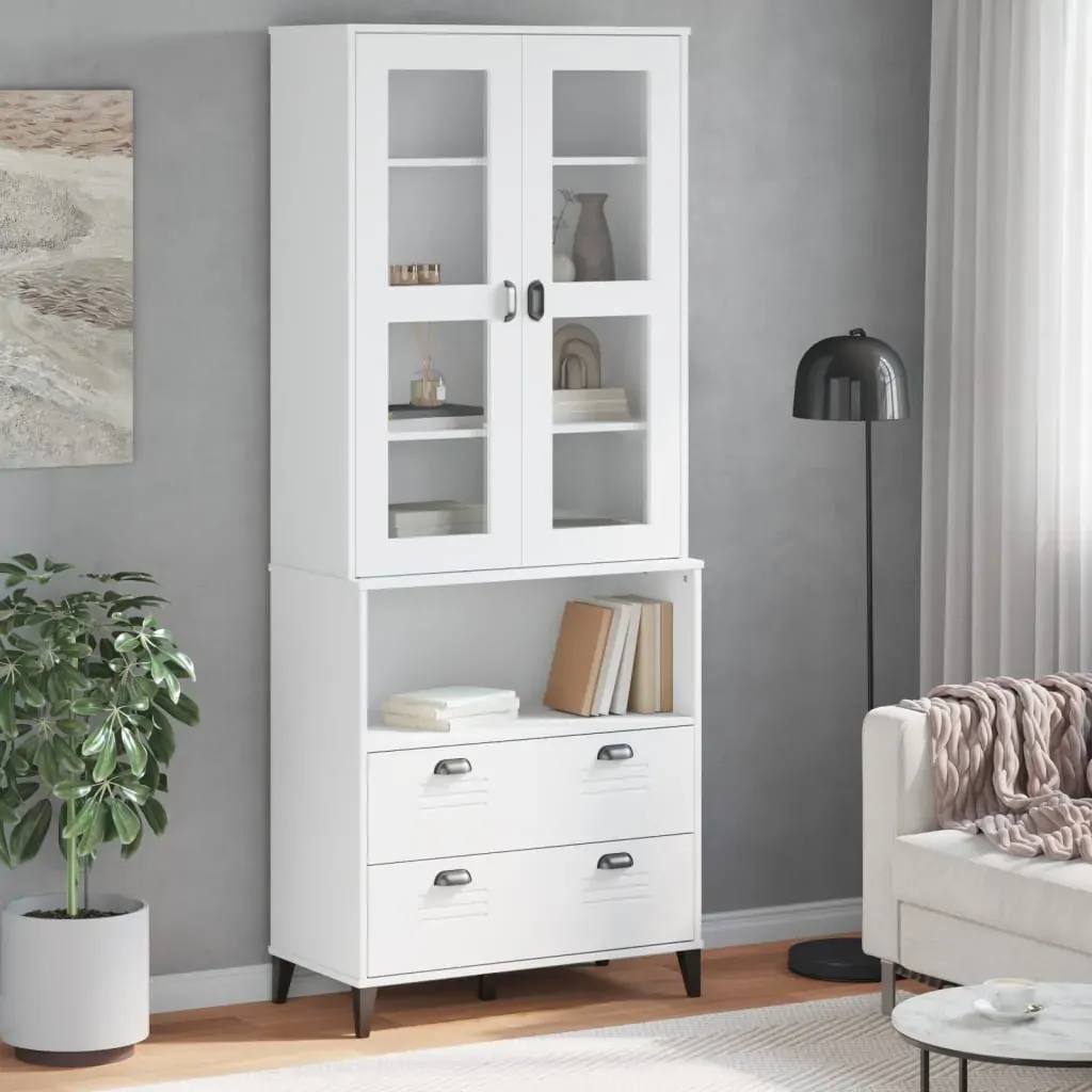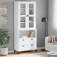 Are you hunting for a stylish highboard? This highboard adds an elegant charm to your existing interior! Solid pine wood: Solid pine wood is a beautiful natural material. Pine wood has a straight grain, and the knots give the material its signature, rustic look. Made of solid pine wood, the cabinet is durable and sturdy.Ample storage space: The sideboard provides ample storage space for keeping your various daily essentials well-organised and within easy reach.Glass doors: The doors of this wooden cabinet top have increased robustness and safety thanks to their tempered polished glass. And it allows you to see inside the top half to display items beautifully.Practical handles: The storage cabinet comes with handles that make it easy to open and close the cabinet while adding extra beauty. Warning:To prevent it from tipping over, this product must be used with the provided wall attachment device.