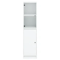 Are you hunting for a stylish highboard? This highboard adds an elegant charm to your existing interior! Durable material: The engineered wood is of exceptional quality with a smooth surface and features strength, stability and resistance to moisture.Ample storage space: The cabinet provides ample storage space for keeping your various daily essentials well-organised and within easy reach.Practical glass door: Keep your space clutter-free by hiding small essentials behind the doors of the cupboard. In addition, the glass door allows you to see inside the storage cabinet to display items beautifully. Good to know:To prevent it being overturned, this product must be used with the provided wall attachment device.