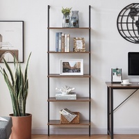 Industrial Ladder Shelf Wood Wall-Mounted Bookcase Storage Rack Shelves Display