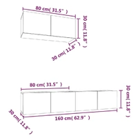 This classic TV cabinet set is designed to be a focal point of your room, featuring a trendy yet practical design. Sturdy material: The engineered wood is of exceptional quality with smooth surface and also features strength, stability and resistance to moisture.Ample storage space: The TV stand set provides ample storage space to keep all your magazines, DVDs and any other items well organised.Wall-mounted design: The TV unit doesn't take any floor space. You can hang it on the wall easily. Note:Screw(s) and plug(s) for inside the wall are not included. Seek and use screw(s) and plug(s) suitable for your walls. If you are uncertain, seek professional advice. Read and follow each step of the instruction carefully.Each product comes with an assembly manual in the box for easy assembly.