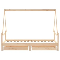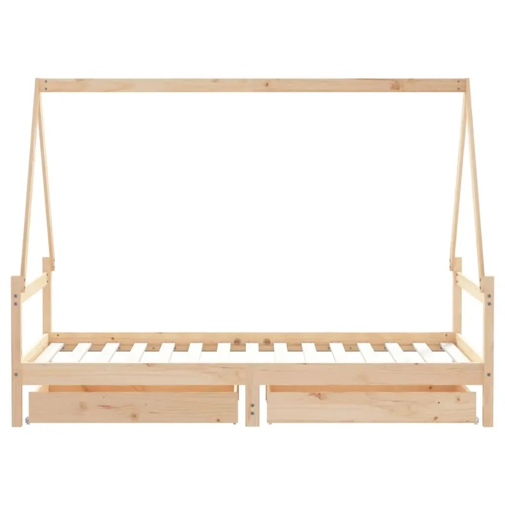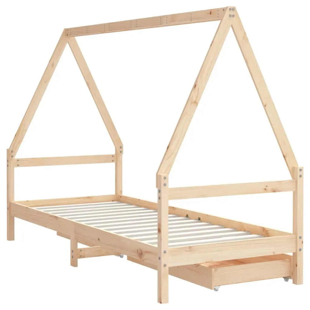 Create a fun-filled space for your little one with this fantastic wooden kids bed frame! Solid pine wood: The kids bed frame is made from solid pine wood. Solid pine wood is a beautiful natural material. Pine wood has a straight grain, and the knots give the material its signature, rustic look.Sturdy slats: The bed for kids has wooden slats for firm support, ventilation and stability.House bed design: This toddler bed is smartly designed with a house-style frame where you can hang bed curtains to create privacy for your kid.Storage drawer: The included storage drawers provide ample space for storing small toys, clothing and bedding, keeping the room tidy and clean.Considerate design: The height of the kids single bed is designed to be low to the ground, making it easy for your child to get in and out of bed.