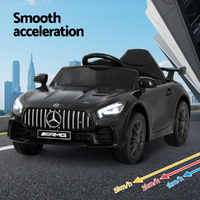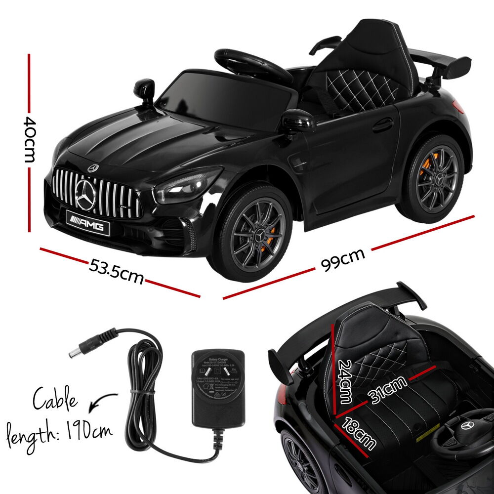 Let your little one experience the excitement of driving a Mercedes-Benz AMG GTR. The steering wheel and acceleration pedal to control the forward and reverse movement give your child control and a realistic driving experience. It comes with some cool entertaining features that will allow your child to have hours of fun. It includes a safety seat belt and a remote control for parent supervision, making it the ideal choice for parents who want a safe and fun way for their children to explore their environment. The licensed Mercedes-Benz Ride on AMG GTR is the perfect gift for any young car enthusiast.