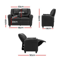 Your kids will love relaxing in the Keezi Kids Recliner. With all the bells and whistles of an adult chair, the recliner is perfect for including your children in the family movie or game night. Constructed from solid pinewood and exquisite PU leather, the chair is designed for long-lasting use. The chair is outfitted top to toe with soft sponge padding for total luxury. The plush padded backrest, extra wide armrest, retractable footrest and adjustable recliner help support your children's posture and offer complete comfort. The convenient cup holder lets them enjoy their favourite drinks while lying back. Let your children daydream and rejuvenate with the Keezi Kids Recliner.