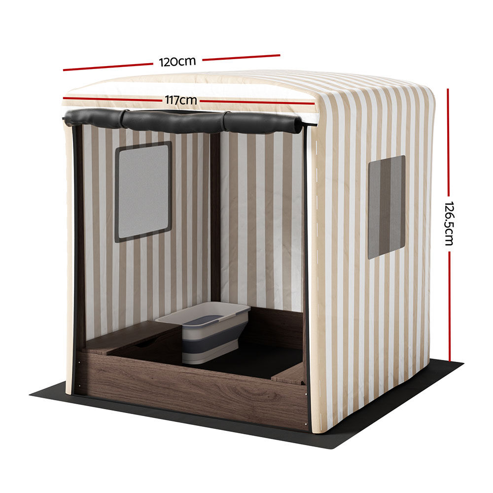 Enjoy a beach in your own backyard with the Keezi Canopy Sandpit. Our sandpit promises hours of fun in the sand for you and your kids. Our sandpits are made with solid treated timber for protection against wood rot and insect damage in addition to its durable and sturdy construction. The full coverage canopy is water-resistant and UV-resistant to keep your child dry and cool in any weather, with a roll-up door and mesh windows for that extra breeze on hot days. With enough room for 3 to 4 kids, it's also a good rallying place to have some awesome outdoor fun with friends or family. Includes a nylon ground sheet to fully protect your garden and floors and prevent sand contamination, and a storage basin to hold toys and other essentials. Best of all, the sandpit is EN71 Safety of Toys certified for your peace of mind. Easy to maintain and a joy to own, the Keezi Canopy Sandpit is one cool place to enjoy the sun, sand and shade in your garden for the family.