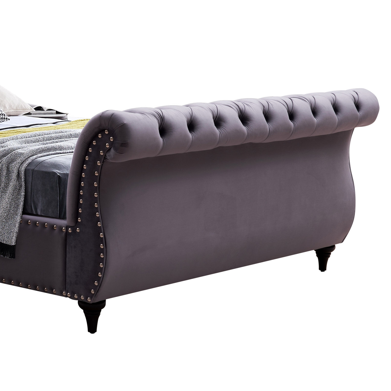 Our exclusive Elsa Bedframe presents the Royal look with its premium velvet upholstery and gorgeous sleigh design. Its beautifully Quilted Headboard-Footboard and aesthetic Grey Colour make the bed a perfect fit for a sophisticated bedroom.