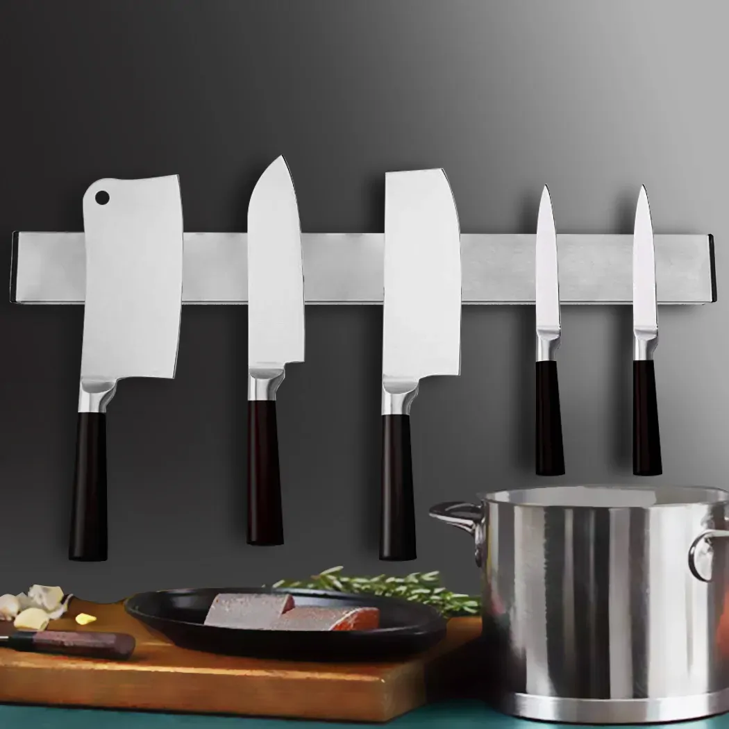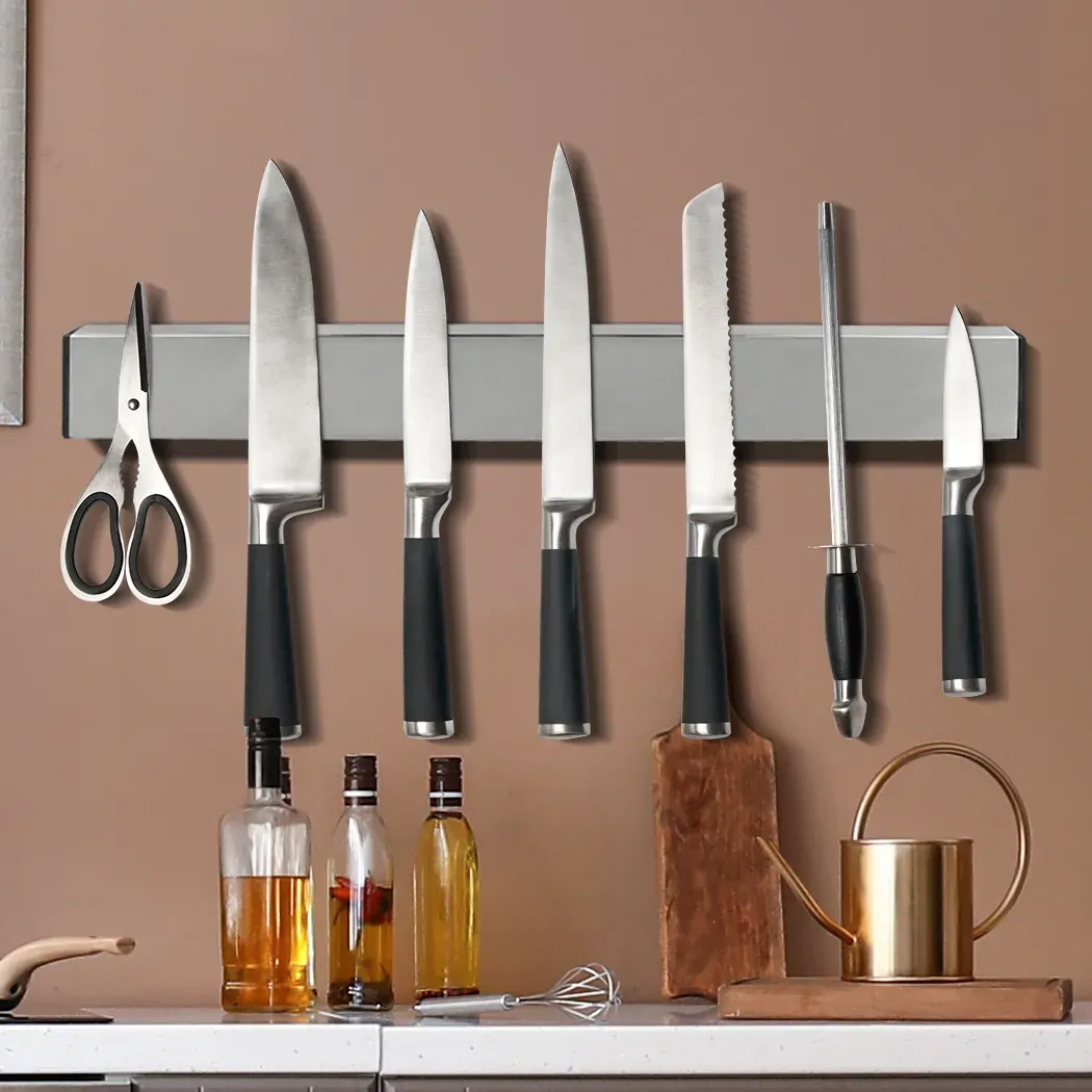 Keep knives and other frequently used tools and utensils conveniently reached with wall-mounted Magnetic Knife Holder. Super-powerful magnet surface holds any knives and tools securely while ensure a convenient access. Highly magnetic strips to hold all metallic knives and utensils firmly in place without any slippage and stay in place permanently. Clear precious counter space all while showing off your knife collection! A more sanitary alternative to store your knives and prevent them from dulling. Can be used for tools and kitchen products alike, suitable for kitchen, garage and workshops.