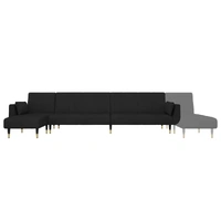 This L-shaped sofa bed is perfect for accommodating overnight guests while providing a comfortable seating space during the day. Multifunctional sofa bed: The sleeper sofa is a wise choice for limited space. It has 3 convertible positions for sitting, lounging, and sleeping, so it can be a comfy reclining couch bed for daily use or a temporary bed for guests.Soft velvet: Velvet is a soft, luxurious fabric that is recognised by its dense pile of evenly cut fibres that have a smooth nap. Velvet fabric features a distinctively soft feel, making it comfortable to touch.Sturdy and stable frame: The plywood and wooden frame of the sofa bed couch ensures sturdiness and stability.Comfortable seat experience: Featuring a velvet upholstery enveloping high-density foam, this folding sofa bed provides a comfy cosy spot for sitting and sleeping. Its armrests and backrest also provide additional relaxation. Note:The product is assembled by a sofa bed and a chaise longue. You can put the chaise longue on the right or on the left as you prefer.