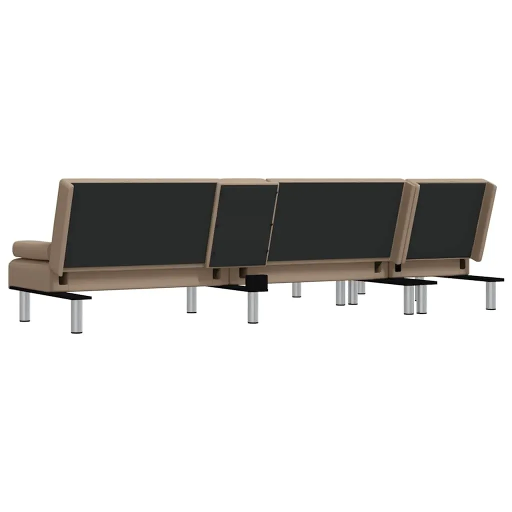 This L-shaped sofa bed is perfect for accommodating overnight guests while providing a comfortable seating space during the day. Multifunctional sofa bed: The sleeper sofa is a wise choice for limited space. It has 3 convertible positions for sitting, lounging, and sleeping, so it can be a comfy reclining couch bed for daily use or a temporary bed for guests.Durable faux leather: Premium faux leather is a highly durable material. It is resistant to stain, making it easy to clean with a damp cloth. The smooth surface also gives a luxurious look and the beauty of real leather.Sturdy and stable frame: The plywood frame of the sofa bed couch ensures sturdiness and stability.Practical design: The day bed sofa comes with a foldable tea table with two cup holders. Also, the tea table features 2 types of USB ports, which can be used to charge your phones, tablet computer, etc.Comfortable seat experience: Featuring a faux leather upholstery enveloping high-density foam, this folding sofa bed provides a comfy cosy spot for sitting and sleeping. Its backrest also provides additional relaxation. Note:The product is assembled by a sofa bed and a chaise longue. You can put the chaise longue on the right or on the left as you prefer.