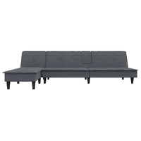 This L-shaped sofa bed is perfect for accommodating overnight guests while providing a comfortable seating space during the day. Multifunctional sofa bed: The sleeper sofa is a wise choice for limited space. It has 3 convertible positions for sitting, lounging, and sleeping, so it can be a comfy reclining couch bed for daily use or a temporary bed for guests.Soft velvet: Velvet is a soft, luxurious fabric that is recognised by its dense pile of evenly cut fibres that have a smooth nap. Velvet fabric features a distinctively soft feel, making it comfortable to touch.Sturdy and stable frame: The plywood frame of the sofa bed couch ensures sturdiness and stability.Practical design: The day bed sofa comes with a foldable tea table with two cup holders. Also, the tea table features 2 types of USB ports, which can be used to charge your phones, tablet computer, etc.Comfortable seat experience: Featuring a velvet upholstery enveloping high-density foam, this folding sofa bed provides a comfy cosy spot for sitting and sleeping. Its backrest also provides additional relaxation. Note:The product is assembled by a sofa bed and a chaise longue. You can put the chaise longue on the right or on the left as you prefer.