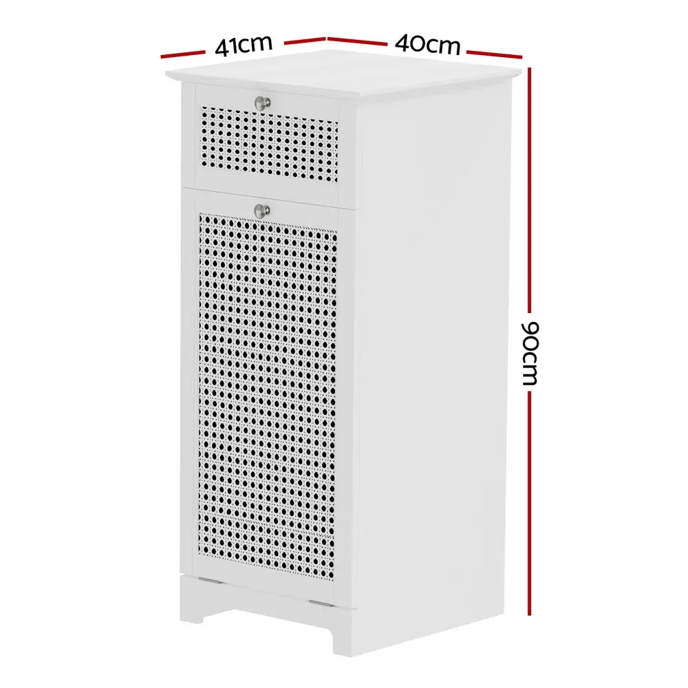 Keep your bathroom organised with an Artiss Bathroom Storage Cabinet. This neat and tidy storage solution is made from durable MDF and PVC rattan for long-lasting use. One generous drawer, a tilt-out storage cabinet and an open tabletop give you plenty of room for your bathroom essentials. Smooth silver handles help you pull out the drawer and open the tilt-out cabinet door with ease. The rattan cabinet doors allow for proper airflow throughout the shelves, preventing mould and bacteria build-up. The cabinet features a removable non-woven fabric basket for your convenience. The space-saving design means you can place it anywhere in your bathroom, laundry or other room with ease. Easy to install and easy to clean, the Artiss Bathroom Storage Cabinet is just what your bathroom needs to stay tidy.