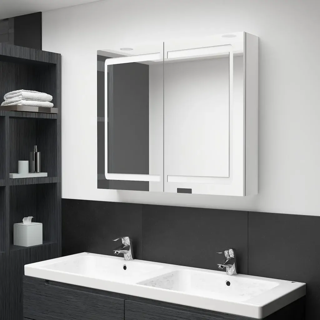 Introduce an aesthetically pleasing into your bathroom with this LED vanity mirror cabinet! This wall mirrored cabinet with LED adds a touch of contemporary style and soft illuminating light to any room! This wall cabinet is made of MDF board with melamine finish, ensuring the long term use. With dual energy efficient LED light strips, you can see yourself in the truest light for makeup application, grooming and skin care, and it can illuminate your room, your face and your smile. Inside includes 3 shelves, which provide ample storage space for all of your toiletries and beauty accessories. You can easily switch on/off the light with bottom button. Stylish and functional, this cabinet will surely make your room design originally exceptional! Note:The product has a USB connector, but the certified 5V USB power source is not included.