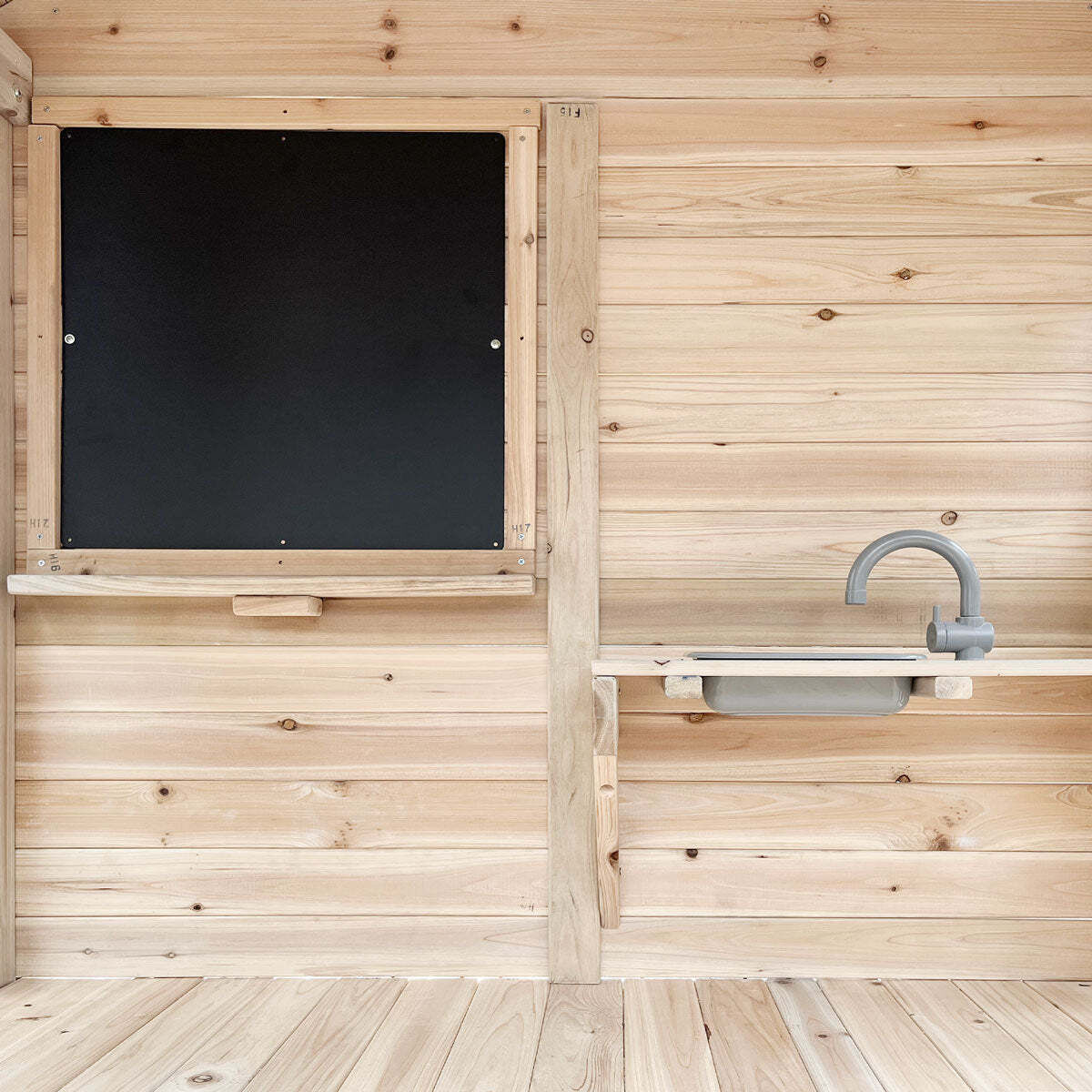 Youngsters will have endless adventures with the Kingston Play Centre and 2.2m Slide. This beautiful timber play centre & cubby house combo will have your little ones entertained for hours, with sandpit, monkey bars, swing set, climbing wall, climbing rope, and slide. Watch their creativity grow with a fun chalkboard and sink included.