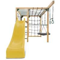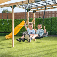 Safety Precautions: On-site adult supervision is required. Place the equipment not less than 1.8 m from any structure or obstruction such as a fence, garage, house, overhanging branches, laundry lines, or electrical wires. Do not install home playground equipment over hard surface to avoide serious injury to the equipment user.