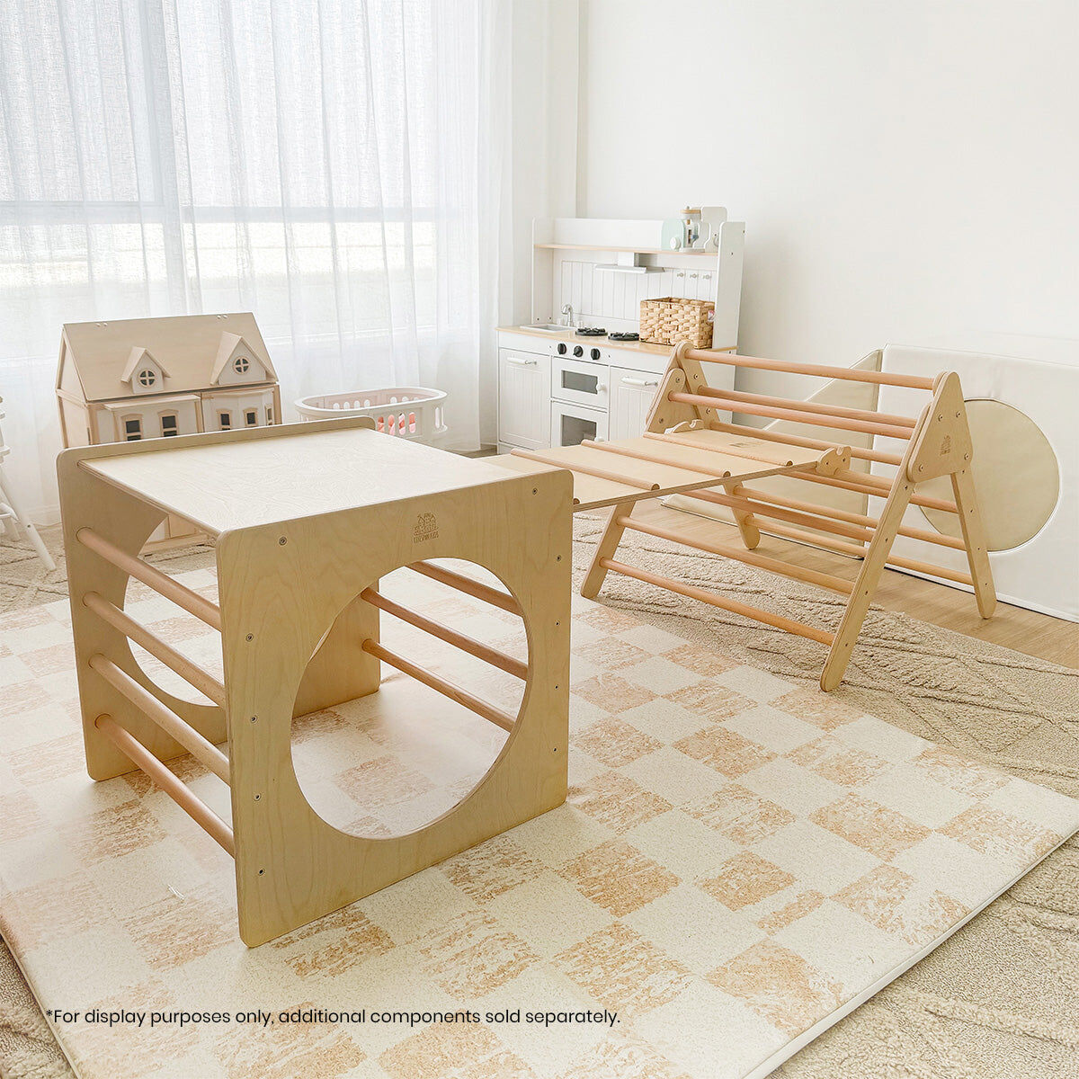 Experience an engaging, hands-on playtime with Pikler Climbing Frame Cube, a play structure designed for children aged 3 years and older. With a combination beechwood and birch plywood, this climbing structure offers a safe and durable environment for children to explore and enhance their motor skills. The robust design ensures stability during play and is less prone to splintering. With a focus on both safety and skill development, the Pikler Climbing Frame Cube is not only a source of fun but also serves as a valuable tool for early development. Its thoughtful design encourages climbing, balancing and coordination, promoting physical activity and healthy growth.