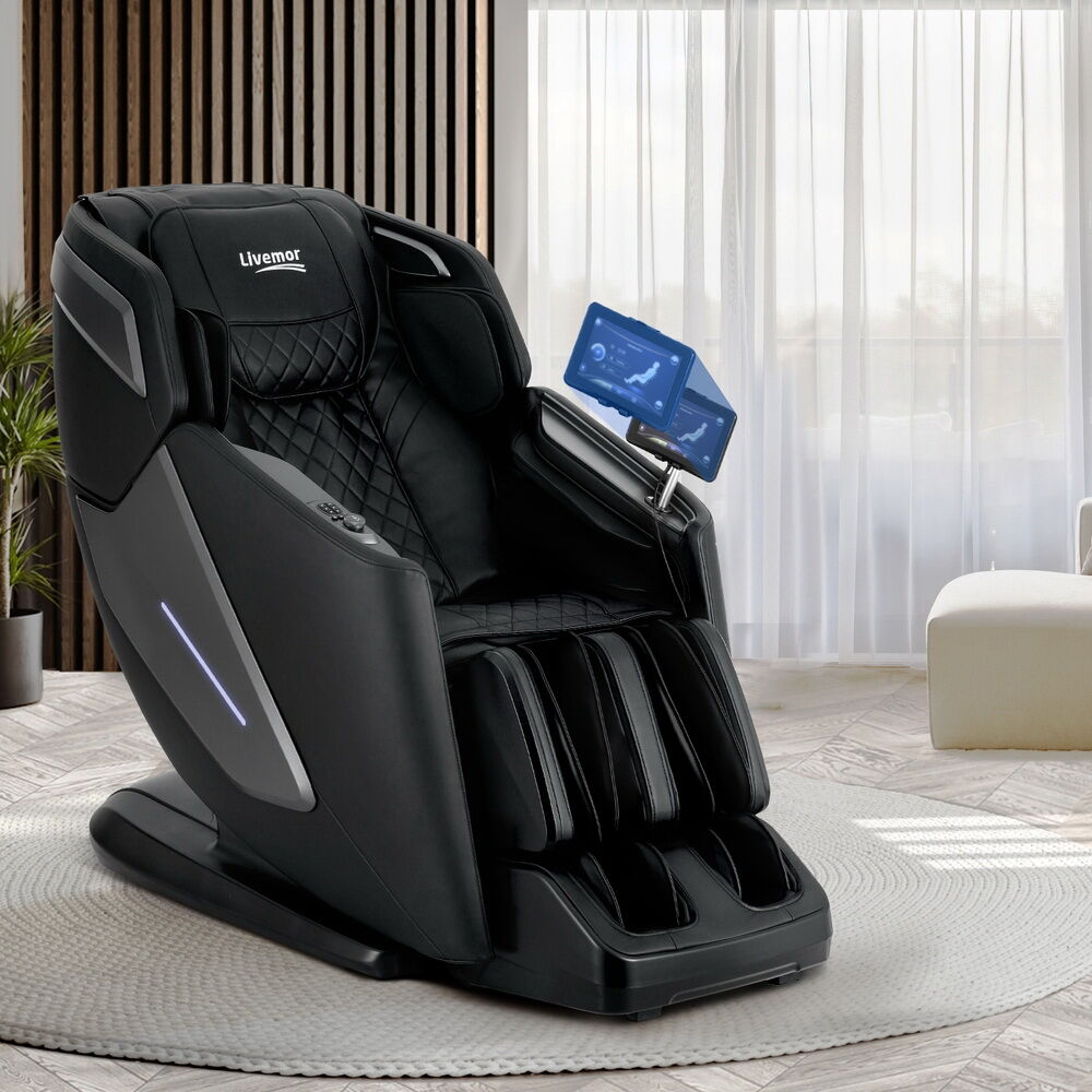 Indulge in ultimate relaxation with the Livermor Electrical Massage Chair, featuring advanced 4D back rollers and 3D buttock rollers for a luxurious massage experience. Its 135cm SL-track design and automatic zero gravity recline reduce spine pressure, while 12 auto full-body massage programs target 9 massage spots from head to feet. Enjoy adjustable roller and airbag intensity levels, heated therapy for the waist and calf, and integrated 3D Bluetooth speakers for immersive relaxation. Control the chair effortlessly with the 7'' LCD touch screen, and rest assured with a 3-year warranty.