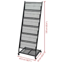 Our magazine rack is an attractively designed display stand for magazines, brochures or books. The six large shelves offer ample space to display A4 brochures, books or magazines side by side. It is easy to move thanks to the castor wheels. With its modern design, it suits almost any interior style. You can place the display rack in your office, waiting room, living room or bedroom. It is easy to assemble.