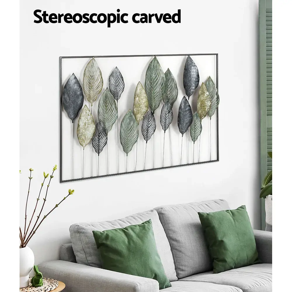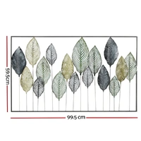 Experience sophistication with this piece of Artiss Metal Wall Art. Crafted from high-quality metal, the wall art is durable and long-lasting, ensuring it will remain a cherished addition to your home for years to come. Meticulously designed, its lustrous metallic sheen enhances interiors, blending modern aesthetics with timeless elegance. The nature-inspired piece features sleek stems and intricate multicoloured leaves within a powder-coated frame that adds a touch of sophistication. Add to any room that needs a spot of colour or a relaxing atmosphere. The piece is simple to maintain simply wipe down with a damp cloth. Comes with two wall mounting brackets so you can easily install your art anywhere in the house. Durable and captivating, the Artiss Metal Wall Art is a must-have décor for discerning collectors.