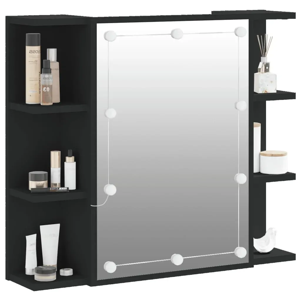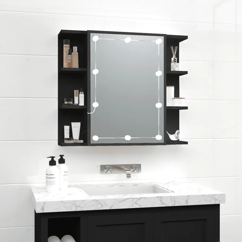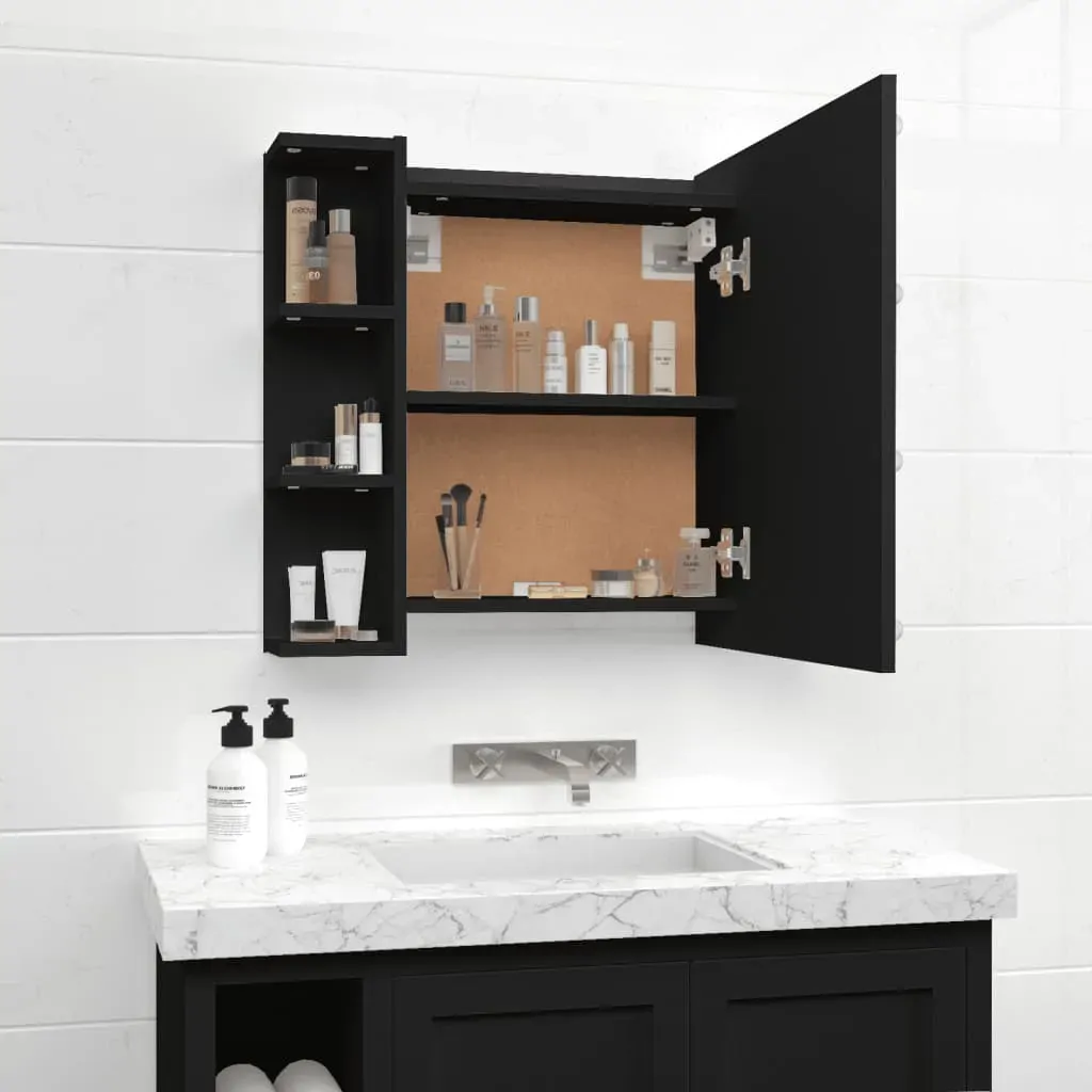 Keep your make-up essentials organised and neat with this trendy mirror cabinet with LED lights! Durable material: The engineered wood is of exceptional quality with smooth surface and also features strength, stability and resistance to moisture. Made of engineered wood, the LED mirror cabinet is easy to clean.Utility mirror: A beautiful mirror provides a view for makeup application and adds an elegant touch to the bathroom mirror cabinet.LED lights: The wall cabinet has LED bulbs, which are equipped with a USB interface, making it very convenient to use.Ample storage space: This jewellery mirror cabinet features compartments, which offer places for your items and keep everything in its place. Good to know:Screw(s) and plug(s) for inside the wall are not included. Seek and use screw(s) and plug(s) suitable for your walls. If you are uncertain, seek professional advice. Read and follow each step of the instruction carefully.
