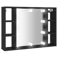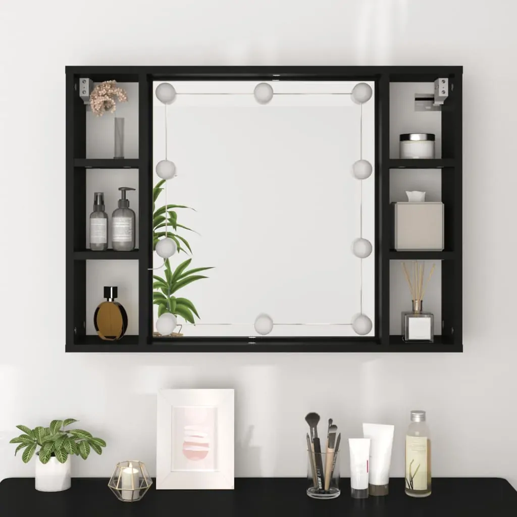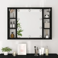 Keep your make-up essentials organised and neat with this trendy mirror cabinet with LED lights! Durable material: The engineered wood is of exceptional quality with smooth surface and also features strength, stability and resistance to moisture. Made of engineered wood, the LED mirror cabinet is easy to clean.Utility mirror: A beautiful mirror provides a view for makeup application and adds an elegant touch to the bathroom mirror cabinet.LED lights: The wall cabinet has LED bulbs, which are equipped with a USB interface, making it very convenient to use.Ample storage space: This jewellery mirror cabinet features 6 compartments, which offer places for your items and keep everything in its place.Wall-mounted design: The LED bathroom mirror cabinet can be wall-mounted. That way, you can maximise your floor space and keep the area clean. Note:Each product comes with an assembly manual in the box for easy assembly.Screw(s) and plug(s) for inside the wall are not included. Seek and use screw(s) and plug(s) suitable for your walls. If you are uncertain, seek professional advice. Read and follow each step of the instruction carefully.