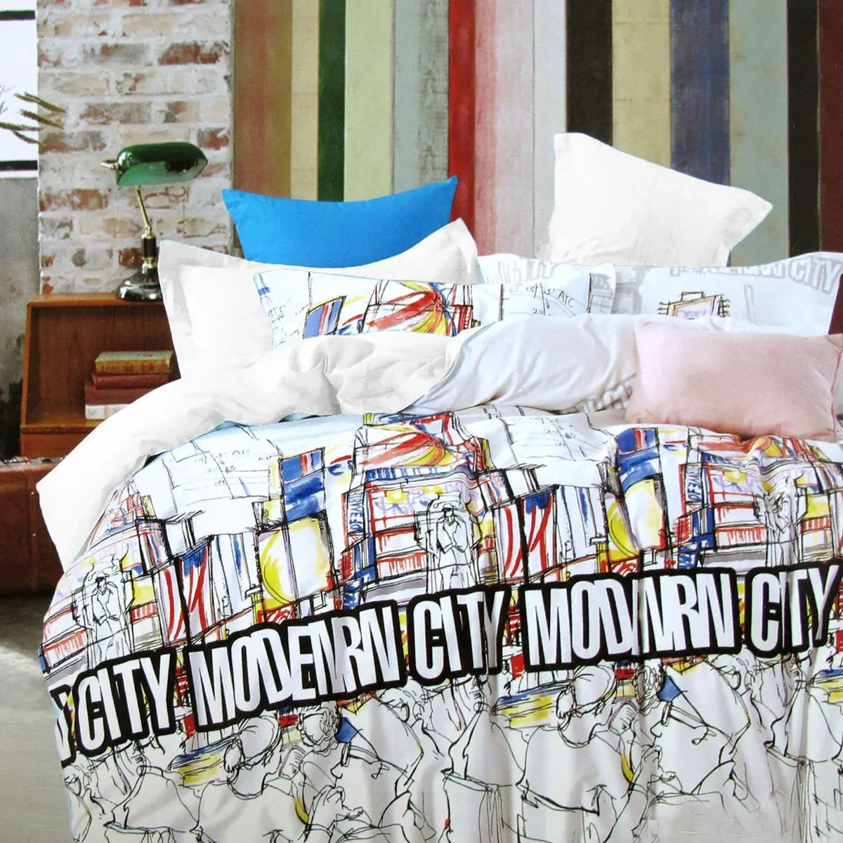 Create a statement to your kid's bedroom that will reflect their unique personality with this Modern City Natural Cotton Quilt Cover Set Single. It features a modern cityscape design printed in striking colour tones of taupe, red, blue, black, grey, white, yellow, and lilac that will add a modern touch to your kid's bedroom. This quilt cover set will transform your kid's bedroom into their own sanctuary for a fun bedtime. It is made from quality and easy care 100% Cotton fabric that is soft to the skin.