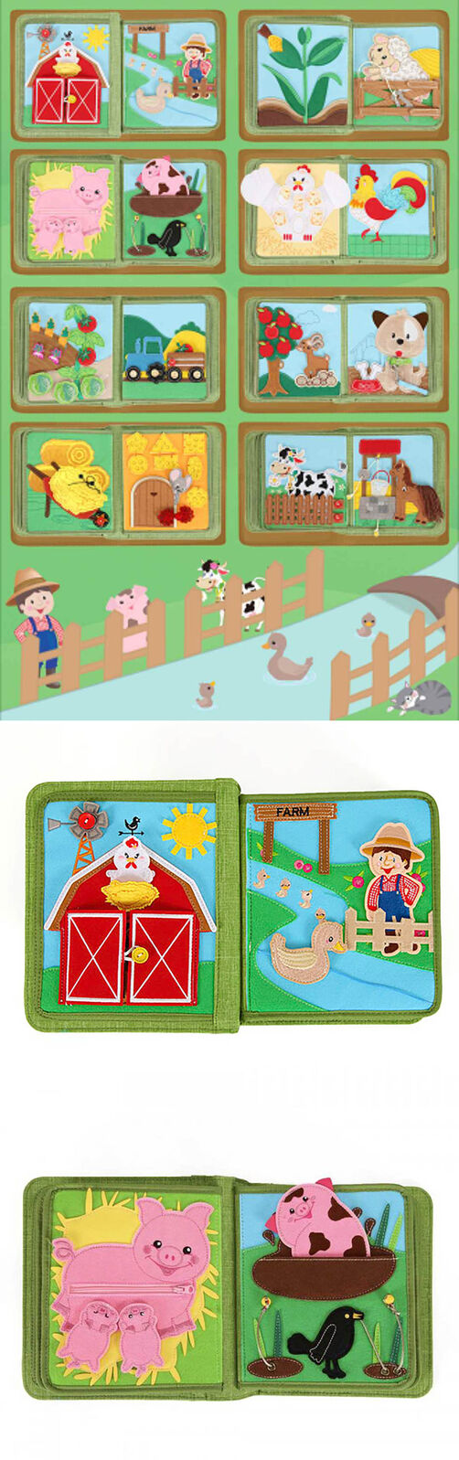 The Busy Farm book is tailor-made for children who are curious about different living environments. At a busy farm, men are working hard to feed animals and transport hay using carts. You will also see adorable animals such as cats, dogs, chickens, and ducklings live on the farm too. This interesting farm adventure will bring children a new cognitive experience.
