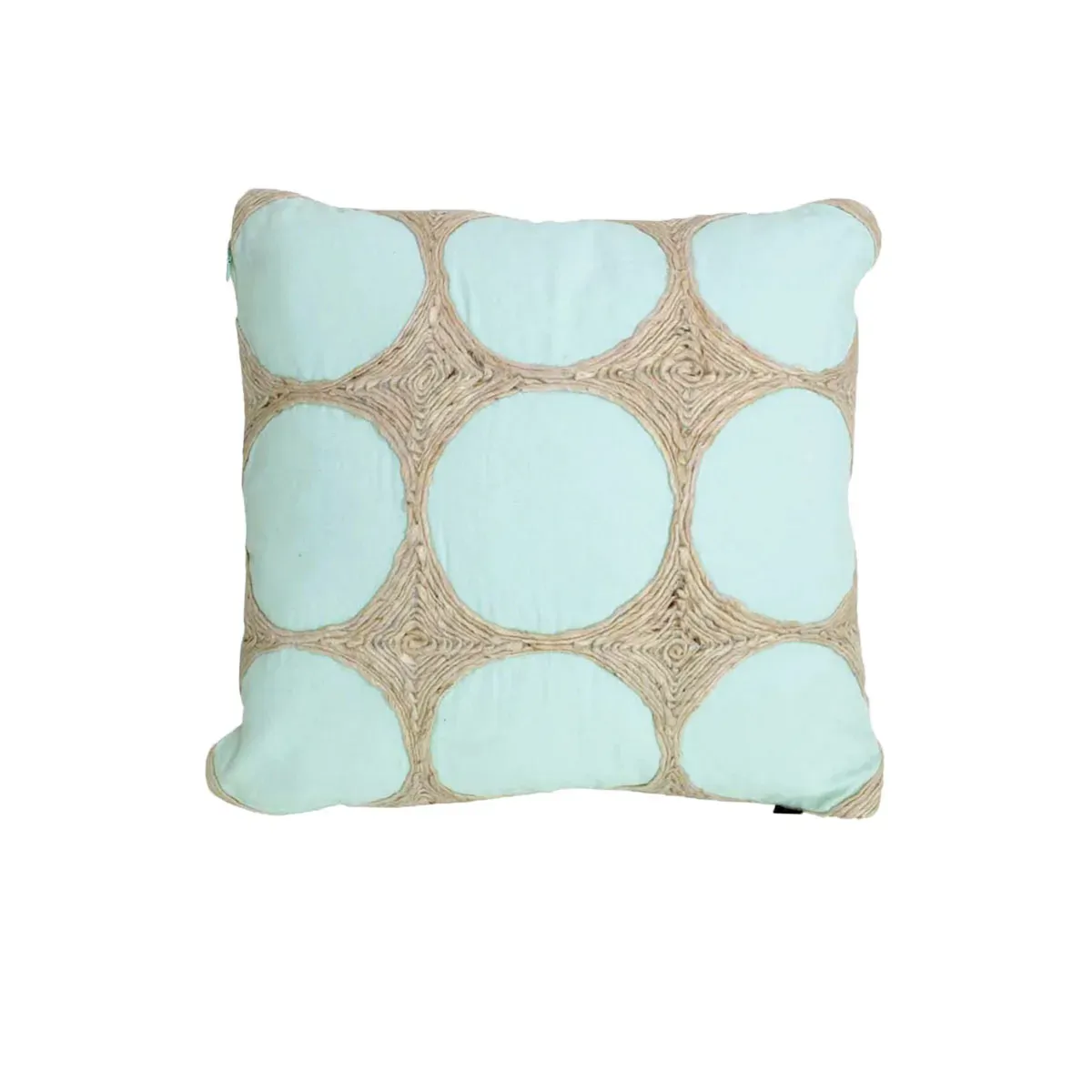 Create a striking statement in your bedroom with this unique design Napoleon Jute Appliqued Filled Cushion 43 x 43 cm by J.elliot. The cushion features appliqued jute circles design in soft colour tones of blue and natural that will create a stunning bedroom update. It is made from strong and wrinkle resistant polyester fabric and polyester filling with softness you can enjoy for years to come.
