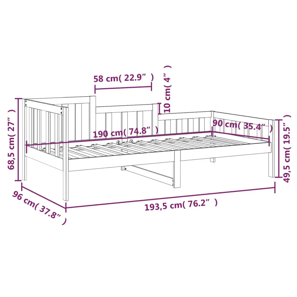 This versatile wooden day bed can be used as a bed in the bedroom and is also ideal as a sofa in the living room. It suits your different needs perfectly, providing you with plenty of space for sleeping and resting. Solid pinewood: Solid pine wood is a beautiful natural material. Pine wood has a straight grain, and the knots give the material its signature, rustic look. The guest bed is made of solid pine wood, more stable and durable. 3-sided bed rails: This sleepover bed has a unique design on the side of the bed, providing a sense of security and also adding a touch of sophisticated style to your home. Slatted design: The wooden slatted base allows better air circulation to keep the mattress fresher for longer, improving the weight capacity of the bed and ensuring stability. Multipurpose sofa bed: This wooden day bed can be used as a sofa during the day or as a bed at night, providing a quick solution for hosting overnight guests. Extra storage space: Make the most of the space under the bed to store various items. Perfect for storing boxes to organise your clothes, toys or quilts. Note: The delivery includes a daybed frame only. The mattress is not included. You can check our shop for the matching mattresses.Each product comes with an assembly manual in the box for easy assembly.