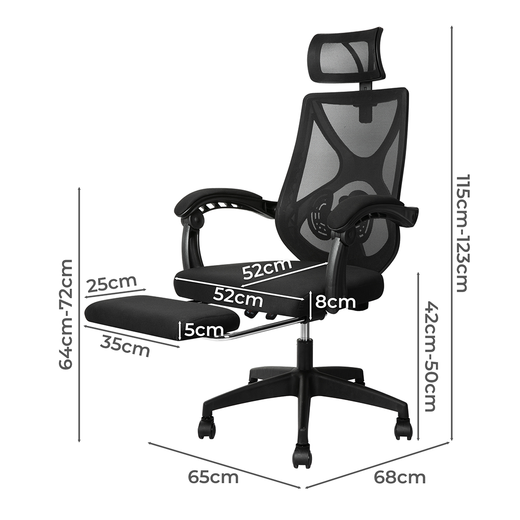 Footrest: 35cm x 25cm x 5cm (W x D x H)