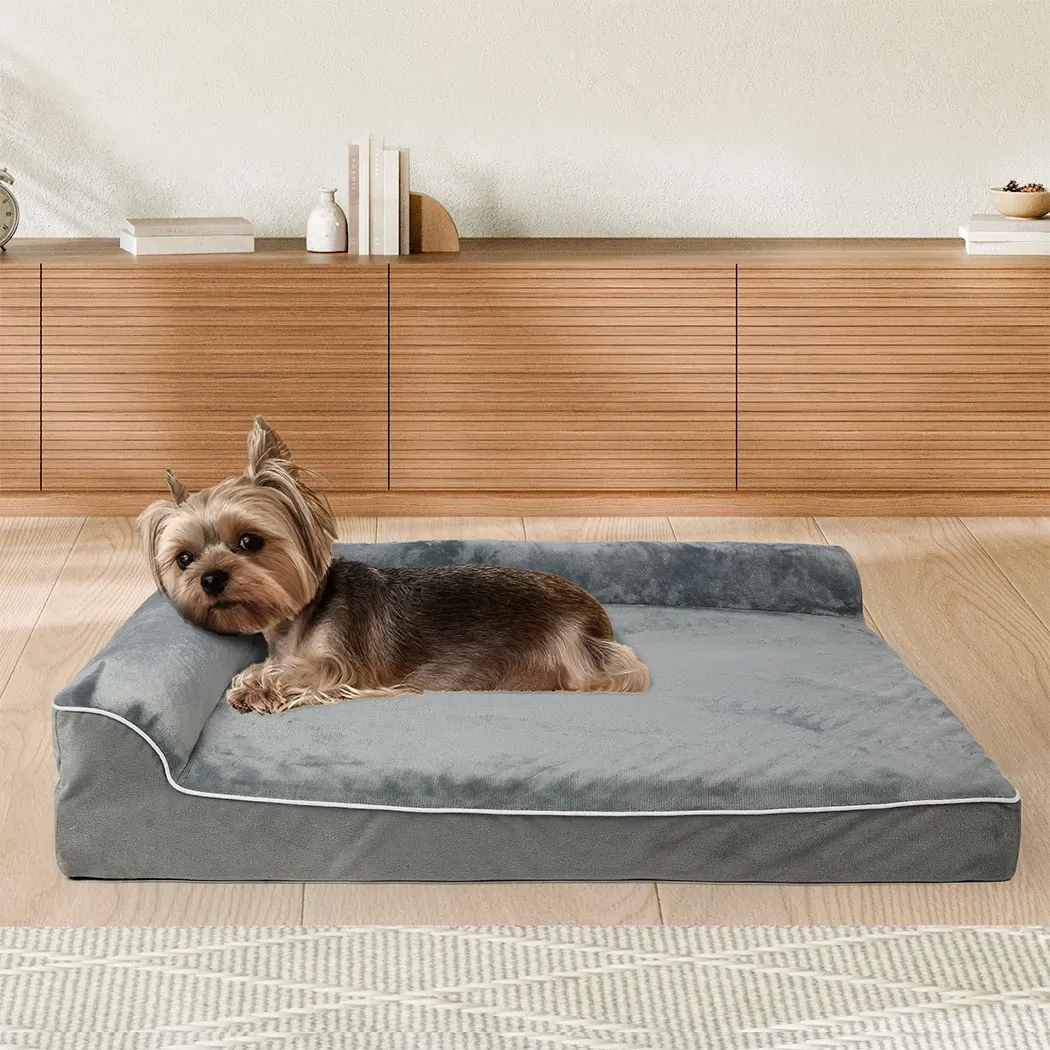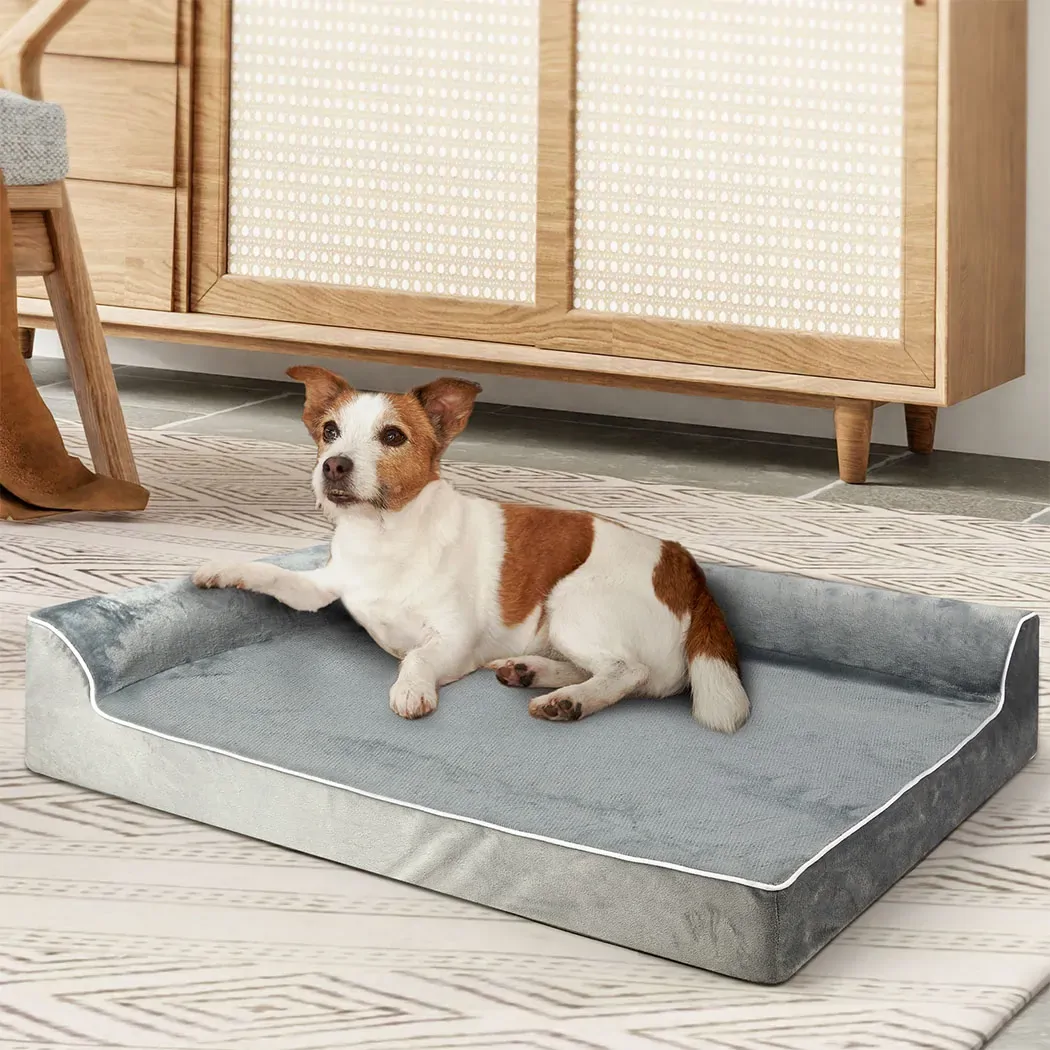 Featuring a unique L-shaped bolster sofa design, this bed offers extra support for your pet’s neck and head, encouraging deep, restorative rest. The surrounding bolsters not only provide a sense of security but also create a cozy spot for your pet to curl up and relax.