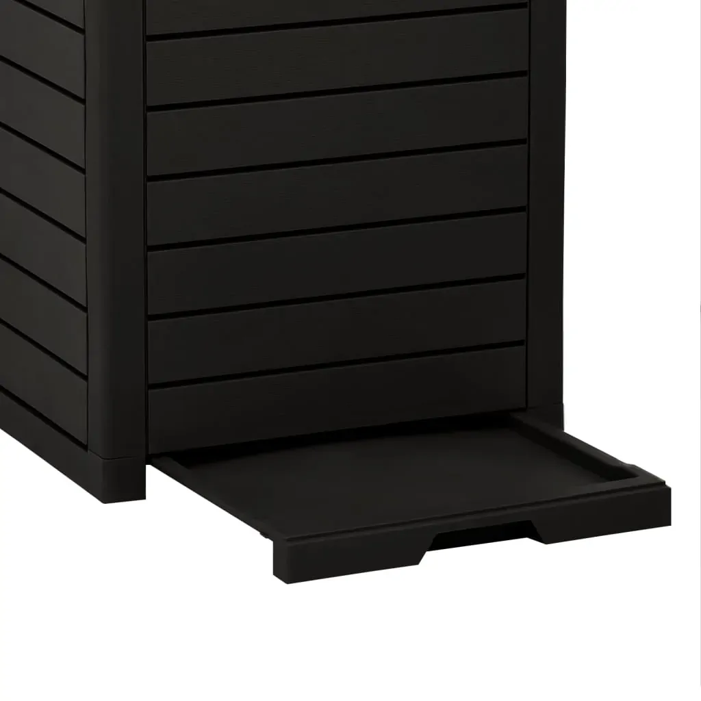 The outdoor garbage bin has a large capacity and double-lid enclosure, making it ideal for use in parks, gardens, and other public spaces. Durable material: Polypropylene (PP) is a popular plastic that is also one of the most used materials in outdoor furniture. It's lightweight, tough, and resistant to impact. Also, its resistance to UV rays and weathering makes it easy to clean and maintain.Imitation wood texture design: The trash can features an imitation wood texture design that adds a touch of natural charm to your outdoor living space.Double lid enclosure: The double-lid design hides the unsightly trash bag and keeps the unit securely shut even when overturned. Additionally, it helps to keep out pesky critters and prevents odours from escaping.Ample storage space: The trash bin has a large capacity of up to 118 L, so you can easily store all your outdoor waste.Removable fluid tray: The trash box features an easy-to-remove fluid tray that makes cleaning the unit as easy as pie.