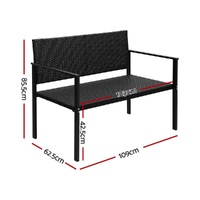 Enjoy a peaceful afternoon in the backyard with a Gardeon 2-seater Garden Bench. This timeless garden bench is the perfect addition to your outdoor dining area thanks to its powder-coated steel frame and sturdy woven PE wicker. The chair is strong, sturdy and weather, insect and rot resistant, so you know it will be there come rain or shine. The woven rattan seat is not only stylish but comfortable and allows for better ventilation. The bench has a weight capacity of 150kg, and with its smooth armrests and wide legs, you're guaranteed a stable, comfortable seat. Use outdoors for a classic exterior look or use inside for a rustic touch to your décor What better way to spend spring than with company outdoors on your Gardeon 2-seater Garden Bench.
