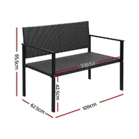 Enjoy a peaceful afternoon in the backyard with a Gardeon 2-seater Garden Bench. This timeless garden bench is the perfect addition to your outdoor dining area thanks to its powder-coated steel frame and sturdy woven PE wicker. The chair is strong, sturdy and weather, insect and rot resistant, so you know it will be there come rain or shine. The woven rattan seat is not only stylish but comfortable and allows for better ventilation. The bench has a weight capacity of 150kg, and with its smooth armrests and wide legs, you're guaranteed a stable, comfortable seat. Use outdoors for a classic exterior look or use inside for a rustic touch to your décor. What better way to spend spring than with company outdoors on your Gardeon 2-seater Garden Bench.