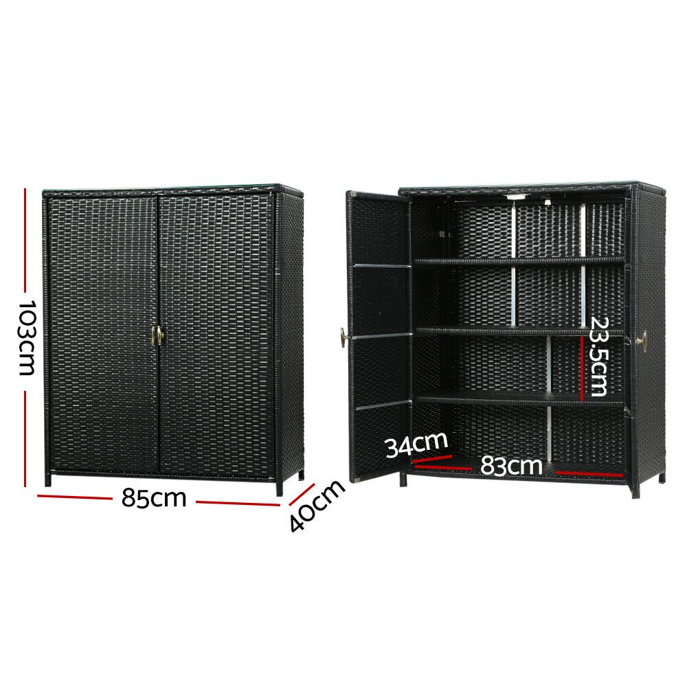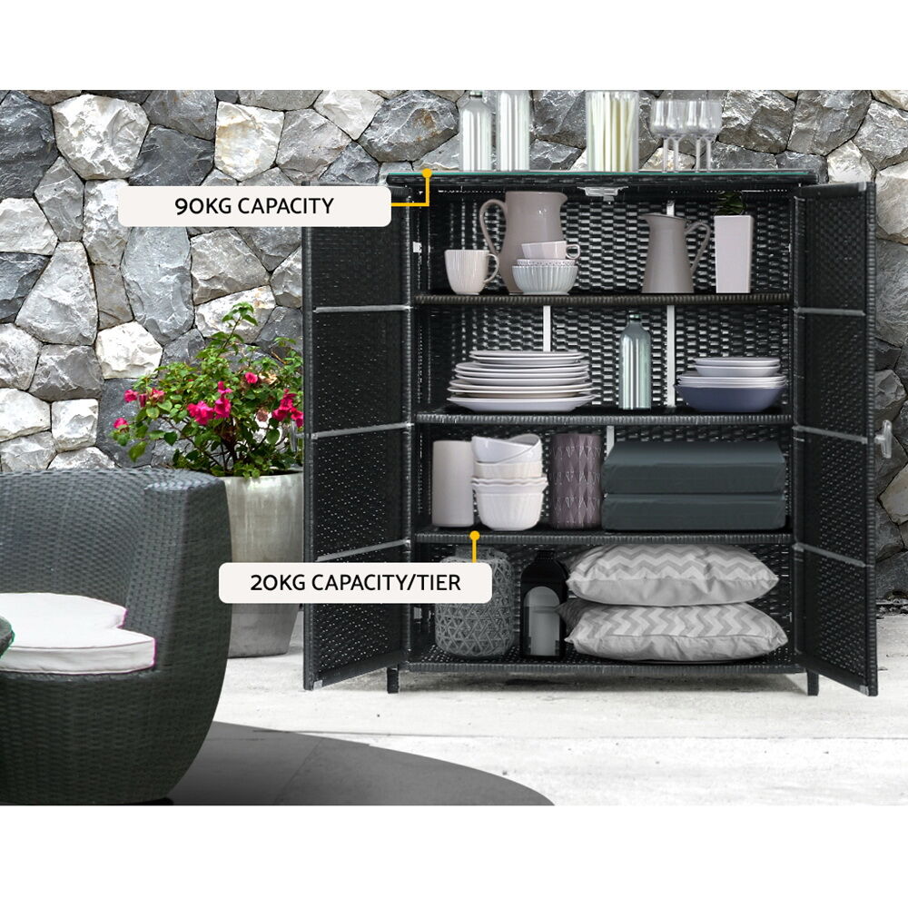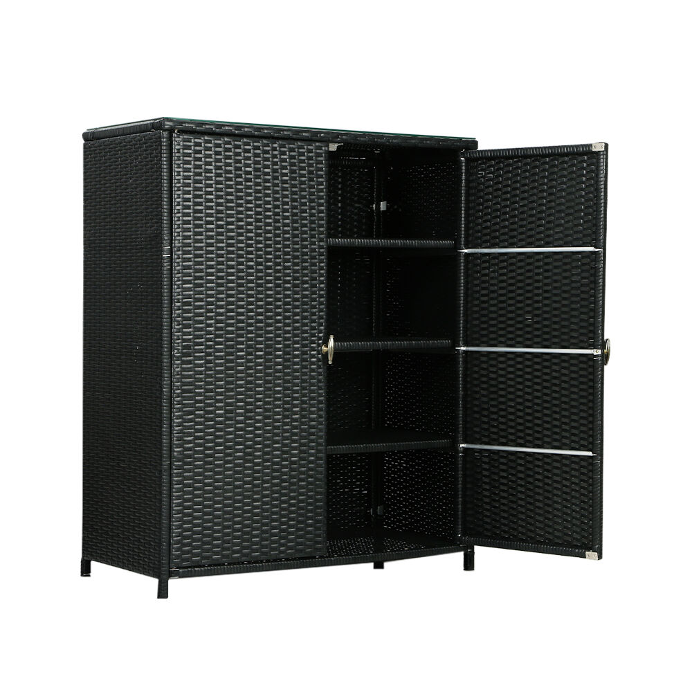 Looking for extra storage for storing your garden or outdoor essentials and expensive tools? We've got you covered. Tidy up your outdoor space and keep things organised with our excellently designed Gardeon outdoor wicker storage cabinet. It flaunts fantastic 2-in-1 design, which makes for versatile use. You can use it as a storage cabinet to store your outdoor essentials and a bar table. Our outdoor storage cabinet comes with a thick tempered glass tabletop with suction pads to keep it in place. It's boasts sturdy aluminium construction, which contributes to its strong inherent structure. It also comes with exquisite handles for easy opening and closing and wall attachment points for safety. Tall, slim, and pleasant looking, this storage cabinet features a gorgeous handwoven PE wicker look and feel that you'll love. It's spacious and has a great weight holding capacity. Additionally, it offers good weather resistance and won't rust, which makes it suitable for outdoor use. Why wait? Bring home this fabulous Gardeon outdoor wicker storage cabinet today!