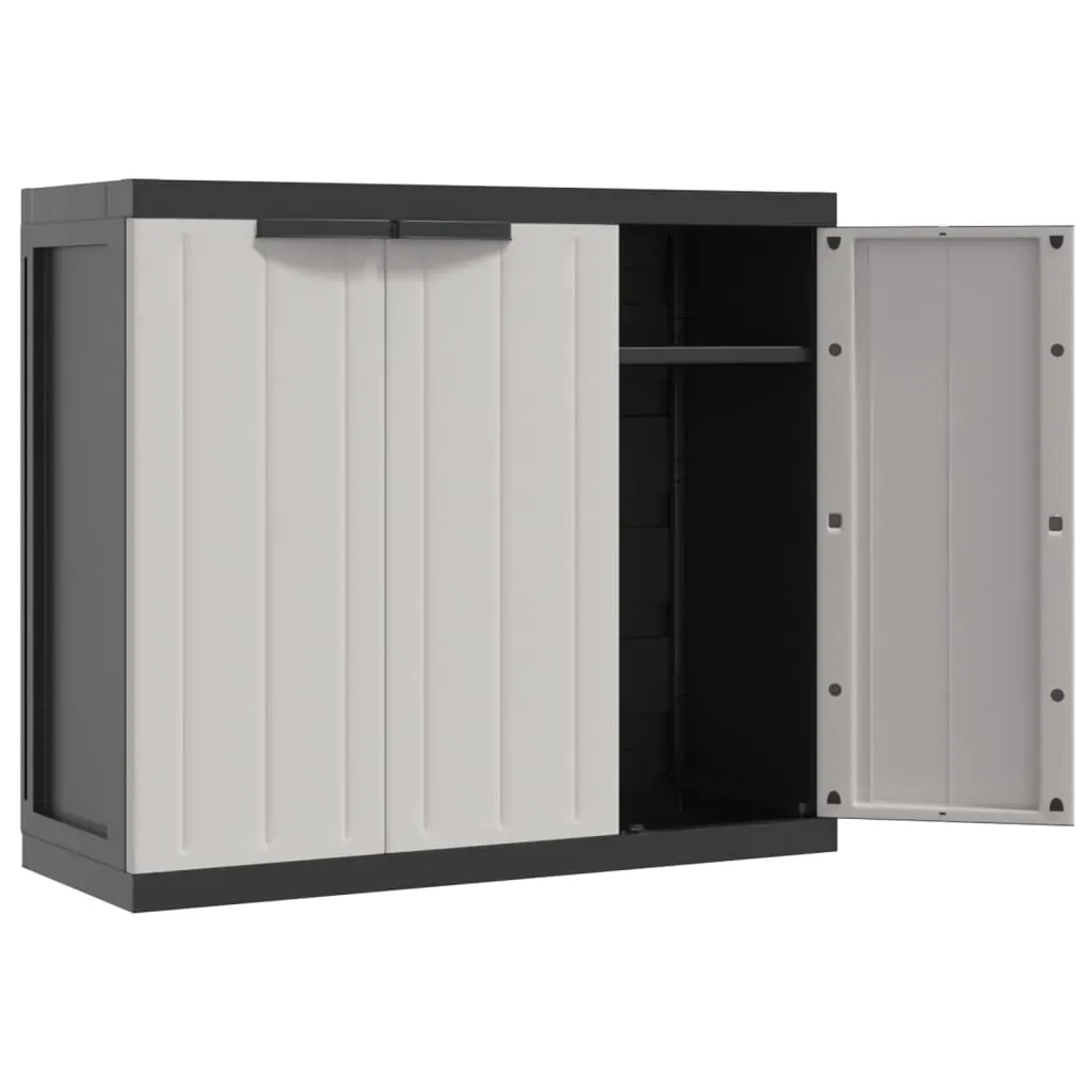 This outdoor storage cabinet is ideal for organising and storing household supplies, tools, or other items. Durable material: Polypropylene (PP) is a popular plastic that is also one of the most used materials in outdoor furniture. It's lightweight, tough, and resistant to impact. Also, this garden storage cupboard is weather-resistant and easy to maintain. Ample storage space: This utility cupboard provides ample storage space to help you sort out your garden supplies, tools, or other items. And the shelf can be adjusted to accommodate items of different sizes. Lockable: The garden storage furniture can be locked for added safety (lock not included). Compact design: With a compact design to make the most of limited space, this outdoor cupboard is perfect for gardens, balconies, and patios. Good to know:To make sure your outdoor furniture stays beautiful, we recommend protecting it with a waterproof cover. Warning: To prevent it being overturned, this product must be used with the provided wall attachment device.