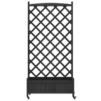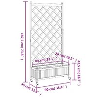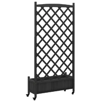 This wooden planter with trellis and wheels is an excellent choice for climbing plants in your garden, patio and terrace. Solid fir wood: Solid fir wood is a beautiful and durable material that maintains its integrity even when exposed to moisture. It does not dry out or warp, making it a reliable choice.Sufficient space: This garden planter is wide and deep enough, providing ample room for growing a variety of plants, flowers, and vegetables. Additionally, the hollow bottom allows for good ventilation and drainage.Trellis fence panel: The patio planter comes with a beautiful trellis fence panel that is perfect for supporting climbing and hanging plants like roses, ivy, or vines. It also adds a stunning visual feature to your outdoor space.Convenient wheels: The solid wheel helps to easily move around your planter when the wheel is attached.Wide applications: This outdoor planter is designed with a round top bar, giving it a stylish and elegant appearance that complements any outdoor space. It can be placed in a patio corner or leaned against a wall or fence. Good to know:The delivery includes the planter only; the liner is not included.