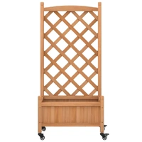 This wooden planter with trellis and wheels is an excellent choice for climbing plants in your garden, patio and terrace. Solid fir wood: Solid fir wood is a beautiful and durable material that maintains its integrity even when exposed to moisture. It does not dry out or warp, making it a reliable choice.Sufficient space: This garden planter is wide and deep enough, providing ample room for growing a variety of plants, flowers, and vegetables. Additionally, the hollow bottom allows for good ventilation and drainage.Trellis fence panel: The patio planter comes with a beautiful trellis fence panel that is perfect for supporting climbing and hanging plants like roses, ivy, or vines. It also adds a stunning visual feature to your outdoor space.Convenient wheels: The solid wheel helps to easily move around your planter when the wheel is attached.Wide applications: This outdoor planter is designed with a round top bar, giving it a stylish and elegant appearance that complements any outdoor space. It can be placed in a patio corner or leaned against a wall or fence. Good to know:The delivery includes the planter only; the liner is not included.