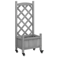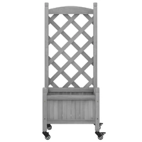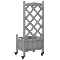This wooden planter with trellis and wheels is an excellent choice for climbing plants in your garden, patio and terrace. Solid fir wood: Solid fir wood is a beautiful and durable material that maintains its integrity even when exposed to moisture. It does not dry out or warp, making it a reliable choice.Sufficient space: This garden planter is wide and deep enough, providing ample room for growing a variety of plants, flowers, and vegetables. Additionally, the hollow bottom allows for good ventilation and drainage.Trellis fence panel: The patio planter comes with a beautiful trellis fence panel that is perfect for supporting climbing and hanging plants like roses, ivy, or vines. It also adds a stunning visual feature to your outdoor space.Convenient wheels: The solid wheel helps to easily move around your planter when the wheel is attached.Wide applications: This outdoor planter is designed with a round top bar, giving it a stylish and elegant appearance that complements any outdoor space. It can be placed in a patio corner or leaned against a wall or fence. Good to know:The delivery includes the planter only; the liner is not included.