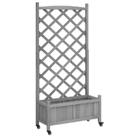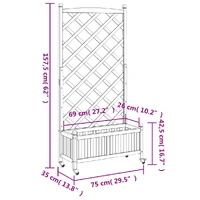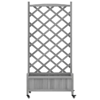 This wooden planter with trellis and wheels is an excellent choice for climbing plants in your garden, patio and terrace. Solid fir wood: Solid fir wood is a beautiful and durable material that maintains its integrity even when exposed to moisture. It does not dry out or warp, making it a reliable choice.Sufficient space: This garden planter is wide and deep enough, providing ample room for growing a variety of plants, flowers, and vegetables. Additionally, the hollow bottom allows for good ventilation and drainage.Trellis fence panel: The patio planter comes with a beautiful trellis fence panel that is perfect for supporting climbing and hanging plants like roses, ivy, or vines. It also adds a stunning visual feature to your outdoor space.Convenient wheels: The solid wheel helps to easily move around your planter when the wheel is attached.Wide applications: This outdoor planter is designed with a round top bar, giving it a stylish and elegant appearance that complements any outdoor space. It can be placed in a patio corner or leaned against a wall or fence. Good to know:The delivery includes the planter only; the liner is not included.