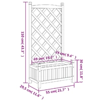 This wooden planter with trellis is an excellent choice for climbing plants in your garden, patio and terrace. Solid fir wood: Solid fir wood is a beautiful and durable material that maintains its integrity even when exposed to moisture. It does not dry out or warp, making it a reliable choice.Sufficient space: This garden planter is wide and deep enough, providing ample room for growing a variety of plants, flowers, and vegetables. Additionally, the hollow bottom allows for good ventilation and drainage.Trellis fence panel: The patio planter comes with a beautiful trellis fence panel that is perfect for supporting climbing and hanging plants like roses, ivy, or vines. It also adds a stunning visual feature to your outdoor space.Wide applications: This outdoor planter is designed with round top bars, giving it a stylish and elegant appearance that complements any outdoor space. It can be placed in a patio corner or leaned against a wall or fence. Good to know:The delivery includes the planter only; the liner is not included.